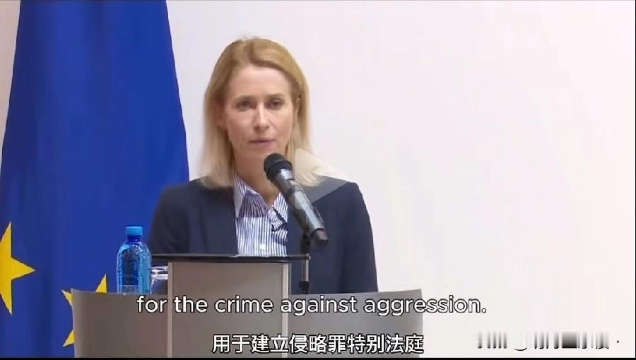 欧盟外长卡拉斯在乌克兰发表讲话,要拨款1000万欧元成立侵略罪特别法庭,用于追究