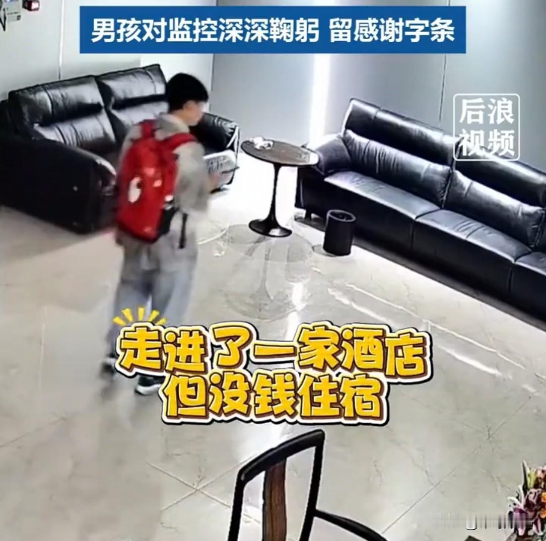 凌晨2点,湖南街头,一男孩攥着衣角来回走。他咬咬牙走进酒店,怯声问:“我能住一晚吗?”女子问:“咋不回家?”谁知,男孩却红着眼道:“我没处去……” 10月1日,湖南怀化一男孩背着一书包的零食,兴致冲冲地坐车到火马冲找同学玩。 两人见面后玩得很开心,互相交换着零食吃。 眼看着时间到下午了,男孩道:“我得回去了,再晚一点,就没车了。” 可同学舍不得男孩,便说:“这有什么,要是时间晚了,你就住我家,这样我们还可以多玩一个晚上,多好。” 男孩一听,顿时有些心动,10几岁的年龄,正是渴望自由的时候,于是便毫不犹豫地答应了。 两人说好后,便又一起去玩了。 正值国庆,街上热闹的很,两人玩着玩着不知不觉就到傍晚了。 就在这时,突然响起了同学父母的声音。 双方打过招呼后,同学父母二话不说就把自家孩子带走了。 男孩站在街上,顿时有些不知所措。 这个时间已经不早了,最后一班车也没有了,男孩顿时有些不知所措。 他想回家去,没有公交车,晚上想找个住的地方,又没有带这么多钱,只能一直在街上晃荡。 好在今天这个大喜日子,街上的人很多,街头巷尾都很热闹,男孩便一直在路上走啊走。 随着夜越来越深,路上的人渐渐散了,徒留男孩一个人在街上走来走去。 凌晨2点,男孩攥着衣角到了一家小酒店门口,他想向店主借宿一晚上,但是又怕店主不同意,于是便一直在门口徘徊。 最后,男孩实在累的不行了,他咬咬牙走进酒店,怯声问店主:“我能住一晚吗?” 老板娘愣了一下,起身走过来,上下打量了他一眼:“这么晚了,你咋不回家?你爸妈呢?” 这句话像根针,一下扎进了男孩的心里。 他想起早上出门时妈妈笑着帮他装零食,想起同学被父母带走的场景,想起自己一人深夜在街上走着…… 眼眶突然就红了,眼泪在里面打转,他使劲眨了眨眼睛,却还是没忍住,声音带着哭腔:“我没处去……我回不了家了……” 他抬手抹了把眼泪,断断续续地把事情的经过说了一遍,从早上来火马冲,到同学被接走,再到自己没车没钱。 说到最后,他的肩膀微微发抖,头垂得更低了:“阿姨,我只有三块二毛钱,能不能……能不能让我在这里坐一晚?” 老板娘听着,心里软得一塌糊涂。 她拉过男孩的手,把他带到大厅的沙发边:“傻孩子,哭啥,今晚就在这儿睡。” 她转身从柜台里拿出一床薄被,又找了盘蚊香点在沙发边,“这天气蚊子多,点上蚊香就不咬你了。” 接着又搬来一台小风扇,对着沙发吹:“晚上有点热,吹着风扇舒服。” 男孩看着老板娘忙前忙后的身影,眼泪又下来了,这次是暖的。 他攥着被角,小声说:“谢谢阿姨……” 老板娘笑着揉了揉他的头:“快睡吧,明天早上我给你下碗面,吃完再想办法回家。” 说完,她把灯调暗,轻轻带上了里间的门。 男孩躺在沙发上,薄被上有股淡淡的肥皂味,和家里的被子一样好闻。 风扇呼呼地转着,蚊香的味道很安心,他翻了个身,很快就睡着了,梦里全是妈妈做的红烧肉。 第二天一早,天刚蒙蒙亮,男孩就醒了。 他叠好被子,把沙发整理得整整齐齐,又从书包里掏出几袋没拆封的零食。 随后,他拿出一张纸,用铅笔歪歪扭扭地写着:“谢谢姐姐收留我一晚,这两袋薯片给你吃,我走了。” 他踮着脚走到门口的摄像头下面,认认真真地鞠了个躬,腰弯得很低,停留了足足三秒钟。 然后他拉上书包拉链,轻轻推开玻璃门,走了出去。 老板娘早上起来时,看见吧台上的纸条和薯片,心里暖暖的。 她调开监控,正好看见那个小小的身影对着摄像头鞠躬的样子,眼泪一下就涌了出来。“这孩子,太懂事了。” 这事儿多暖!老板娘“举手之劳”帮了孩子,孩子记着情还了礼,真是“滴水之恩,当涌泉相报”。 小人物的善意最戳人,你帮我一把,我记你一生,这就是咱身边最实在的暖心事!