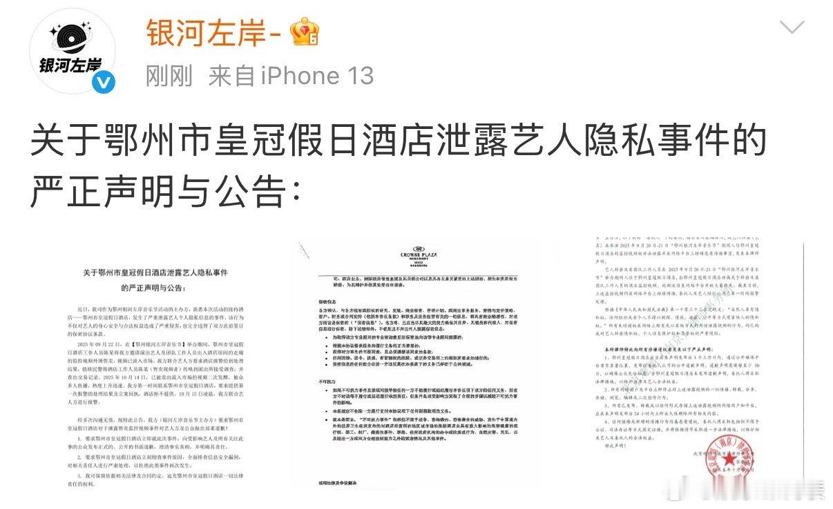 银河左岸严正声明银河左岸就梓渝酒店事件发声明