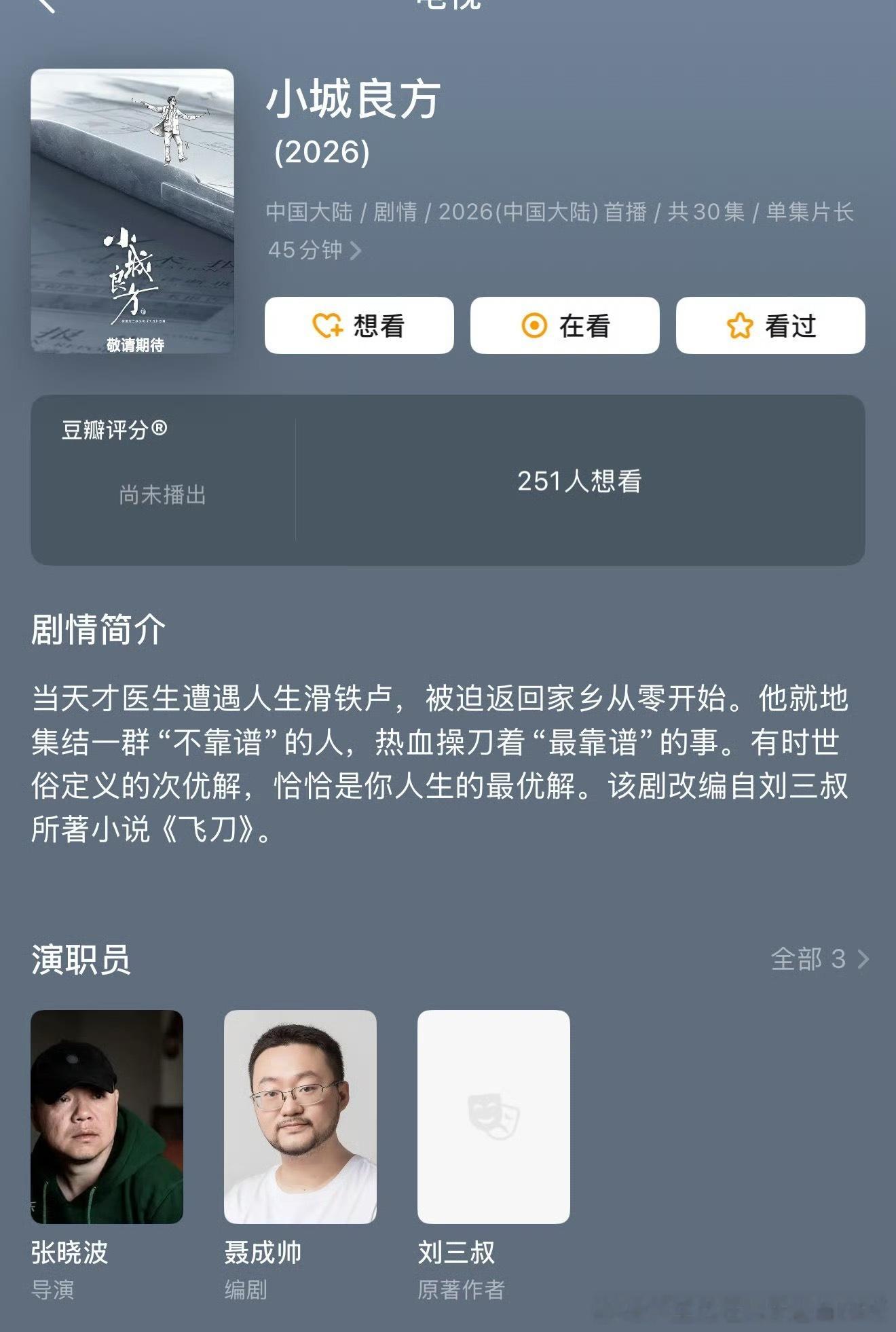 《小城良方》改名《小城的冬天来临之前》,并开通官博