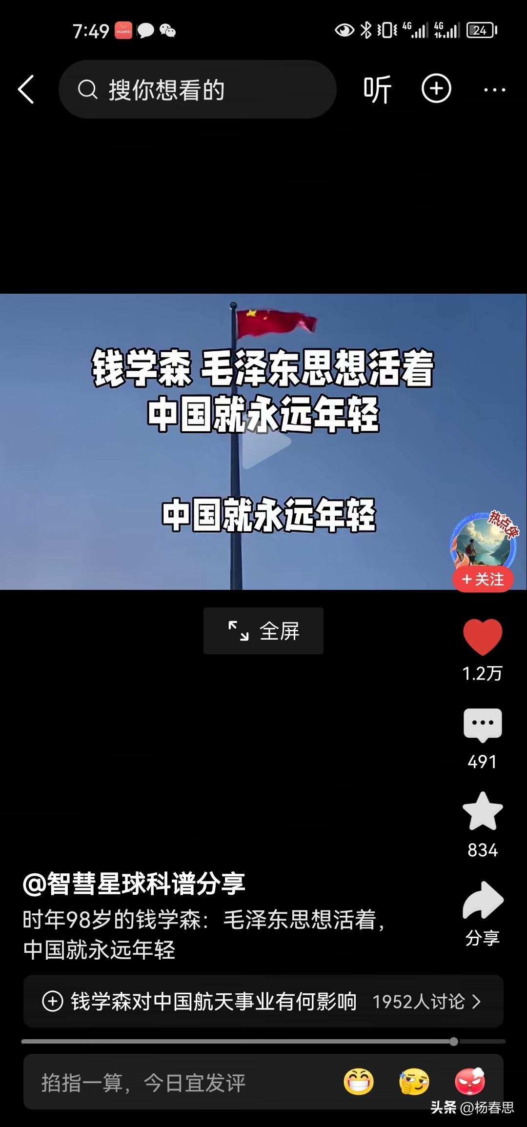 钱学森在临终前郑重写下遗言:只要毛泽东思想活着,中国就永远年轻。毛泽东思想是中国