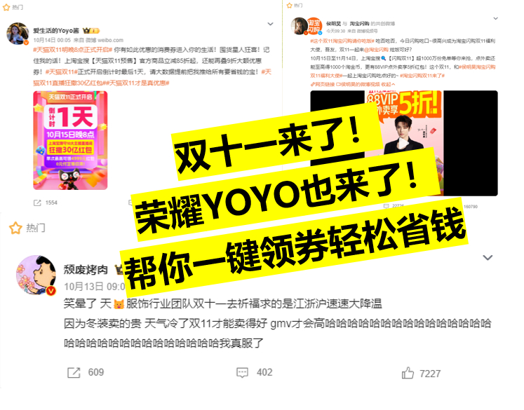 今天双十一领券神器出现了,背后是大家对“省心省钱”的渴望。万事找YOYO,能得到