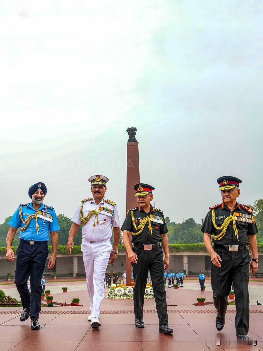 印度军方的四驾马车,掌控着整个印度的武装力量,在整个印度来说,如同神一般的存在,地位无人能撼动!从左至右依次为: 空军参谋长:阿玛尔•普里特•辛格,四星上将。 海军参谋长:迪内什•库马尔•特里帕蒂,四星上将 陆军参谋长:乌彭德拉•德维韦迪,四星上将 国防部参谋长:阿尼尔•乔汗,四星上将