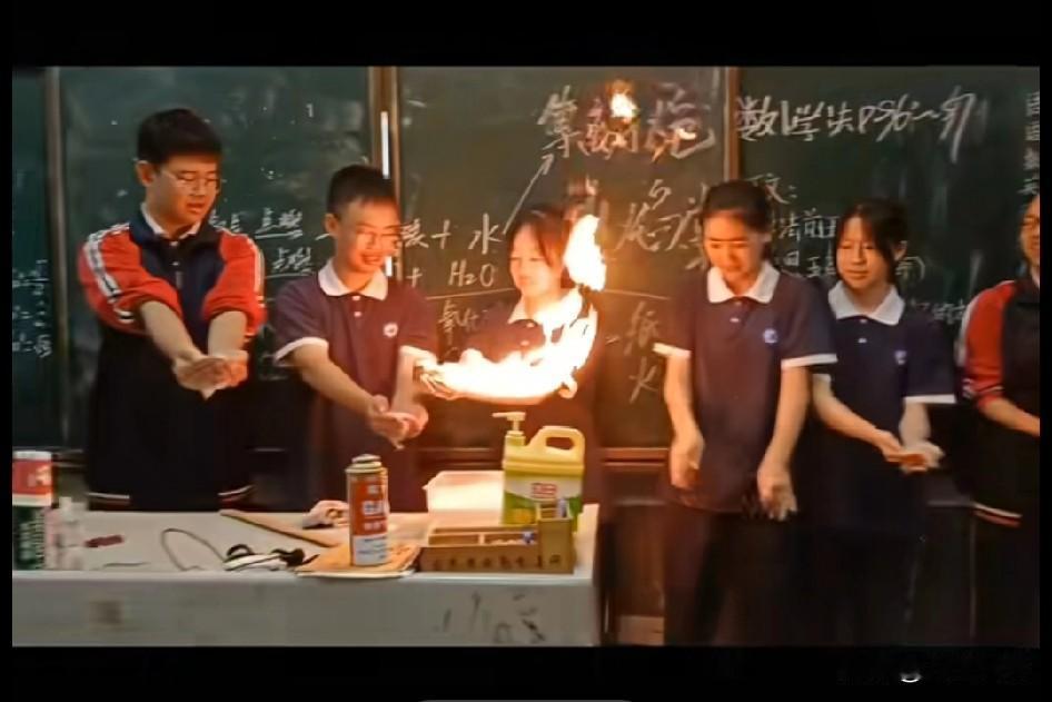考好了以为老师会奖励好吃的,用的,结果化学老师奖励了每人一个火焰球 老师用前途尽毁的代价活跃了课堂哈哈,盆里倒洗洁精,然后向里面冲丁烷气体起泡,然后把泡沫放在手上,点燃。玩过一点不烫,但是也要注意安全 这应该传到外网去,真的 ,每次给大多人看到的都是什么刻板的,严肃的,规则的课堂视频。这样的课堂,孩子们应该很感兴趣吧。好刺激,孩子们会记得很久吧,太酷了