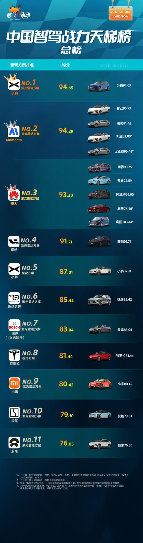 第一电动这个榜单我觉得很靠谱,符合实际表现~