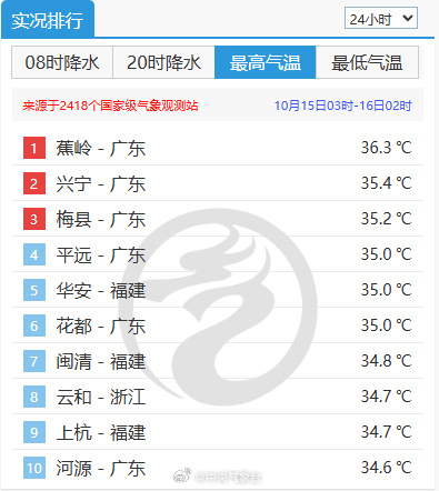 【#全国气温最低零下18.8度最高36.3度#】#全国最冷最热温差达55.1度#过去24小时,全国最低气温在黑龙江漠河-18.8℃,最高气温在广东蕉岭36.3℃,北方部分地区已经冬天了,南方的朋友还在开空调。