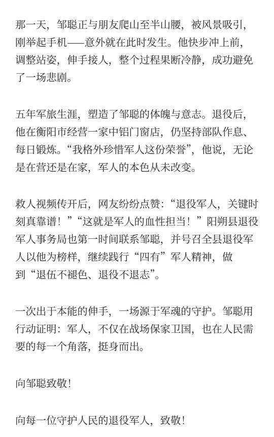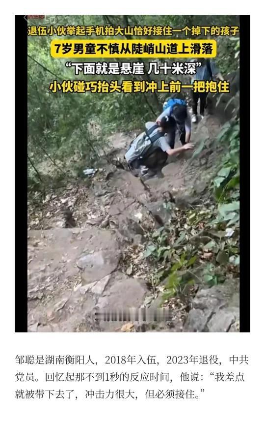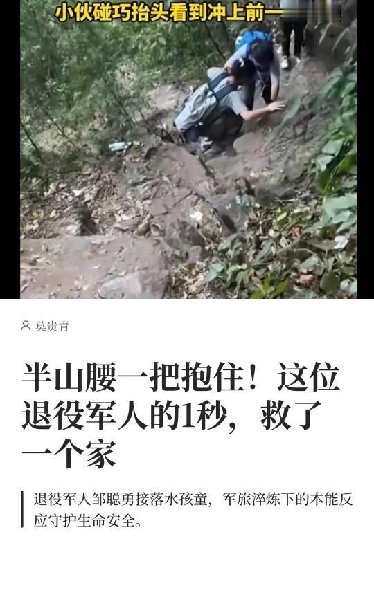 半山腰一把抱住!这位退役军人的1秒,救了 一次出于本能的伸手,一场源于军魂的守护。邹聪用行动证明:军人,不仅在战场保家卫国,也在人民需要的每一个角落,挺身而出。向邹聪致敬!向每一位守护人民的退役军人,致敬!退伍不褪色传递正能量 退役不褪色 退役军人