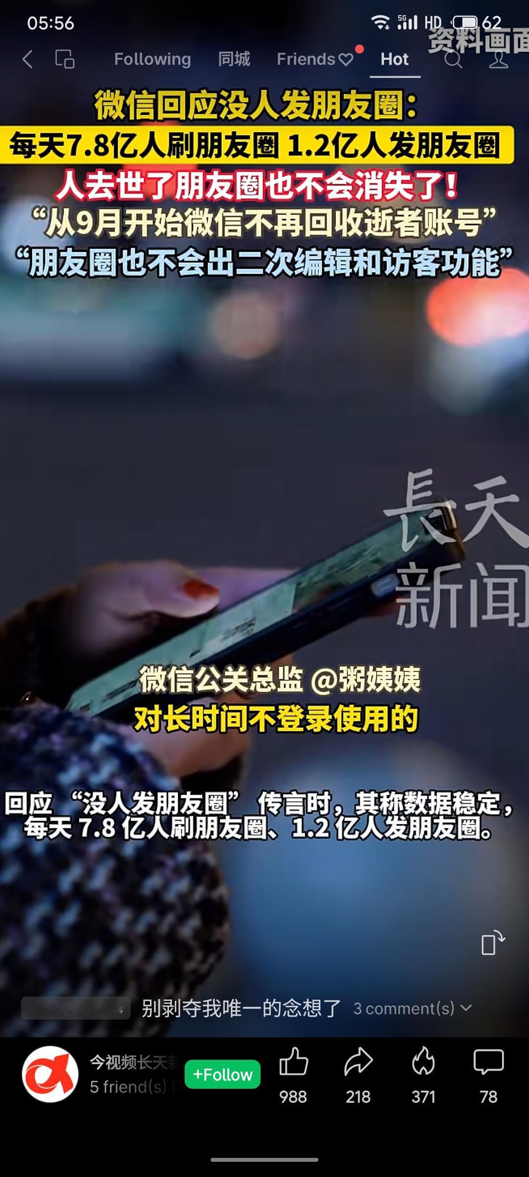 微信回应“没人发朋友圈”的传言,称数据显示每天有7.8亿用户进入、1.2亿用户发