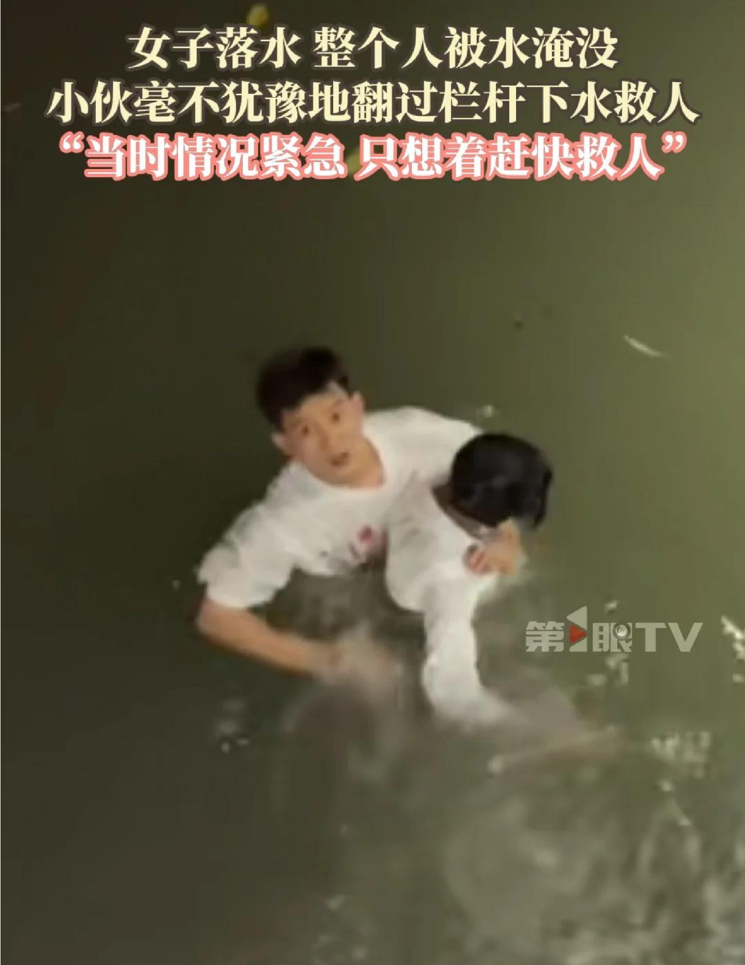 女子落水小伙毫不犹豫地翻过栏杆下水救人 女子落水,整个人被水淹没,小伙毫不犹豫地翻过栏杆下水救人,跳下去瞬间脚被扎伤,将人救起后赶往医院治疗。小伙:当时情况紧急,只想着赶快救人。