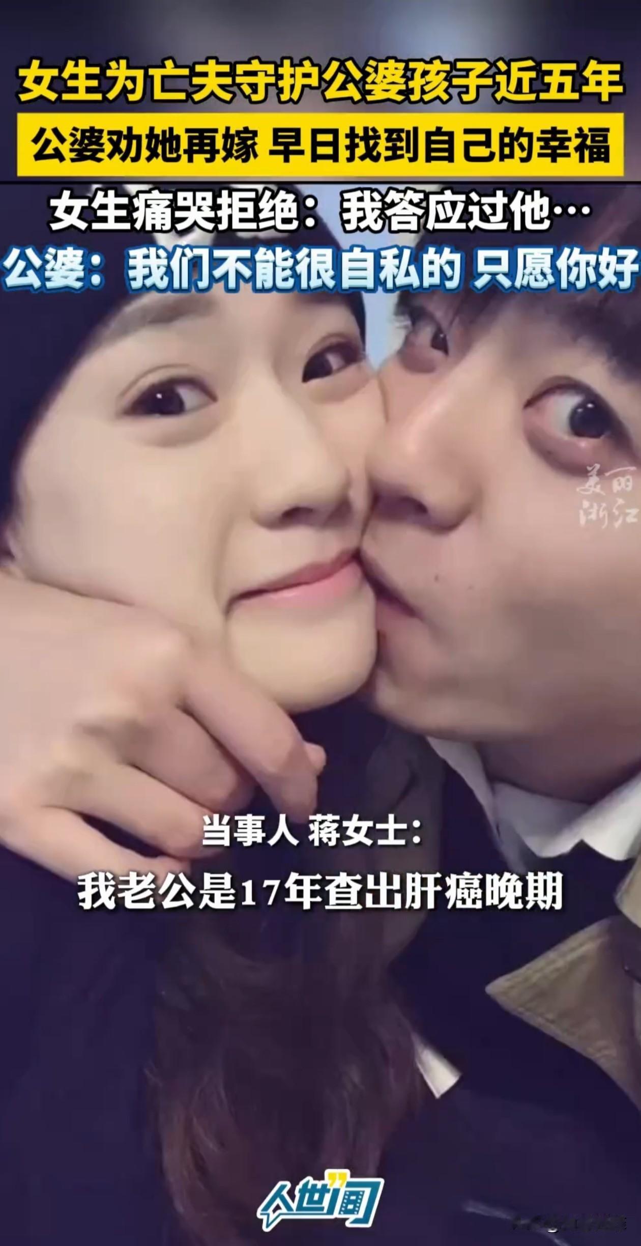 丈夫去世近5年,女子一直守护着公婆和孩子,公婆看在眼里,非常心疼她,劝她再嫁,去寻找自己的幸福。女子痛哭拒绝:我答应过他,不能食言。 浙江,2017年,女子的丈夫查出肝癌晚期,她悉心照顾,直到他离世。当时家里孩子还年幼,公婆年纪也大了,身体不算好,于是女子决定留下来照顾他们。 在这近5年里,她成了家里的顶梁柱,每天早起做饭,送孩子上学,白天要么在地里干农活,要么在家做家务,晚上回家就辅导孩子写作业。 她自己从没喊过苦,但公婆看在眼里疼在心里。老两口觉得她还年轻,总劝她找个好人家,去追求自己的幸福。 公公更是直言,希望有一天能把儿媳妇风风光光地嫁出去。 但女子表示,丈夫走之前拉着她的手,让她好好照顾爸妈和孩子,她答应了,就不想食言。 有网友觉得她守住了对亡夫的承诺,把老人和孩子照顾得妥帖,是个有良心,有担当的好女人。 也有网友承认她的善良,觉得她很有毅力,值得佩服,但不觉得人人都要学她,承诺是情分,不是枷锁。 每个人的选择不同,她选择守护家庭是本心,重点是她自己过得踏实,公婆孩子也珍惜她,这就够了。