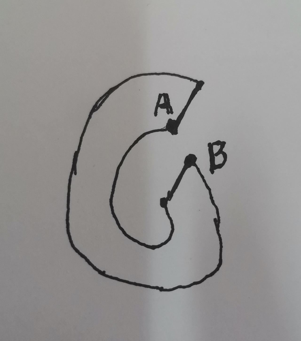 其实,外星人是这样来到地球的:请看下图,如果从这个弯曲的二维平面上走,A与B的距