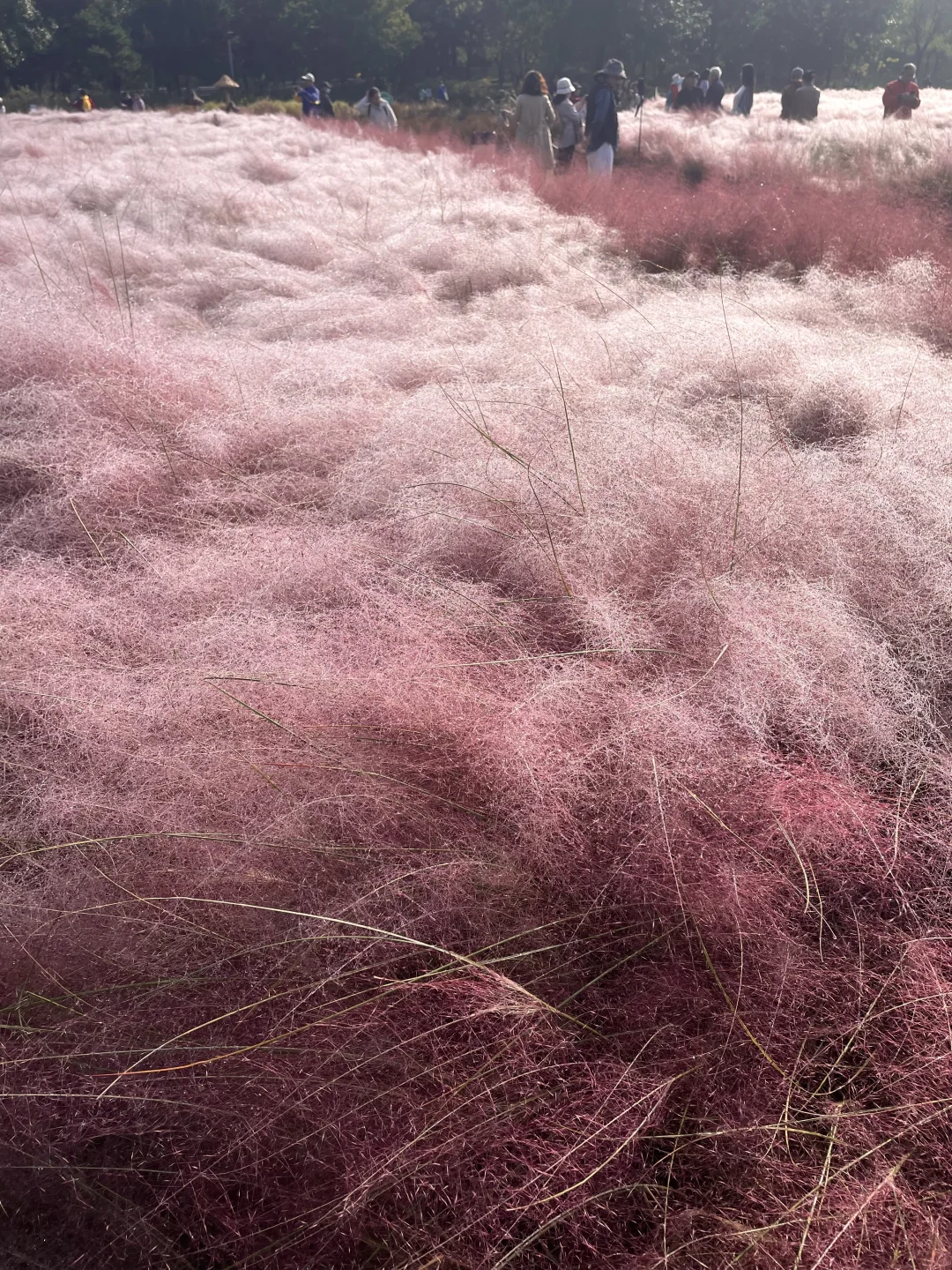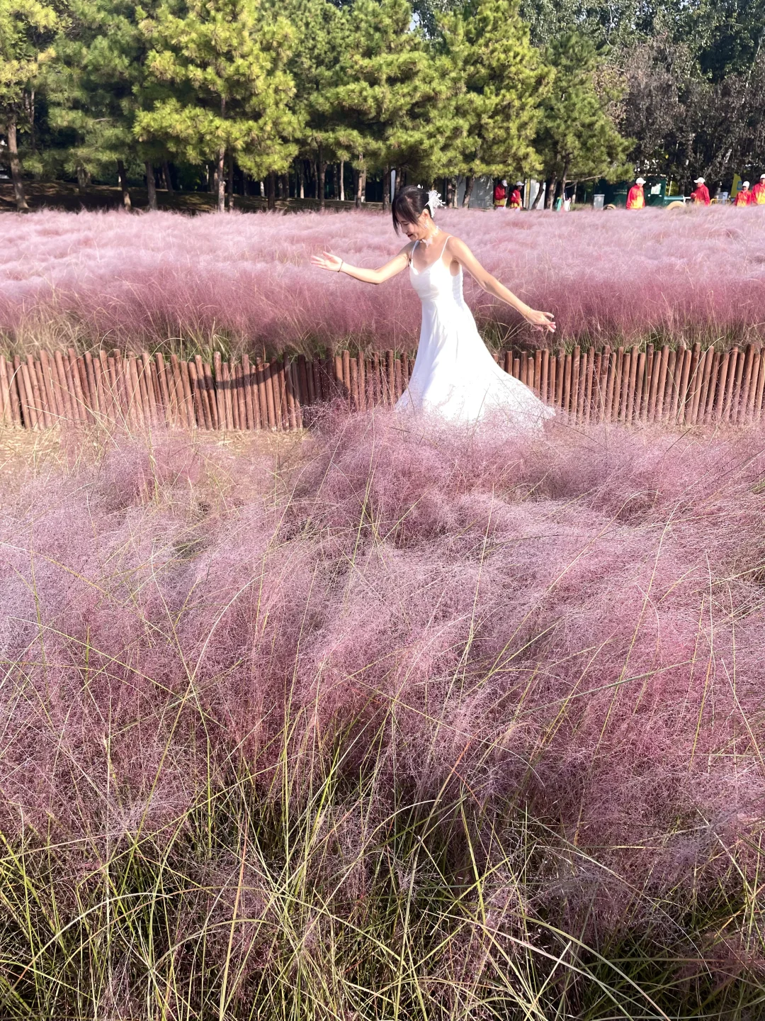 今早送完娃上学去奥森溜达了一圈 第一次大早晨逛奥森 走到粉黛子草附近的时候,已经被老年团攻占了😂 阳光下的大片粉黛子如云似雾 拍不出来那种美 有些上面还挂着露珠,所以呈现出白色 太阳洒下来像柔软蓬松的棉花糖 穿白裙子在花丛中起舞的姐姐,太梦幻了 秋天短暂又美好,周末一定要多出去走走哦~ ps:最好下午去,露珠蒸发之后会更粉,光线也更柔和 📍奥森北园“花田野趣” 🚇林萃桥C2口出,北园西门进