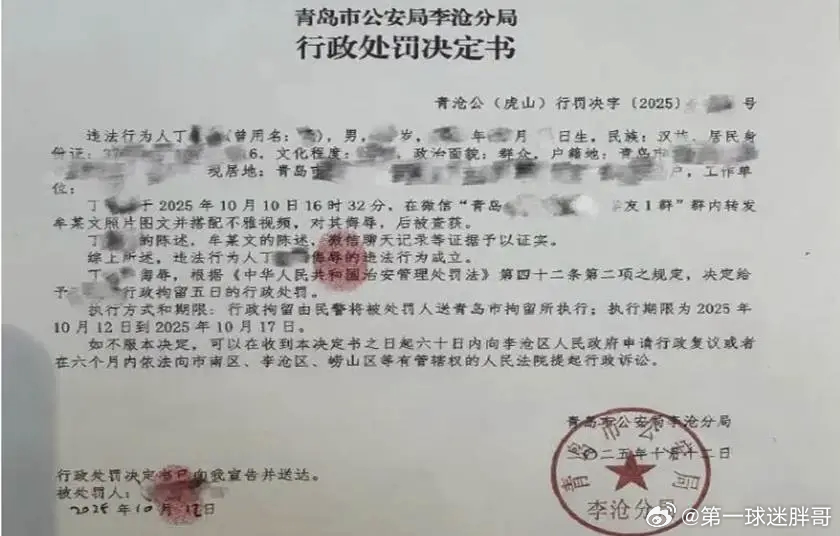 她晒出了青岛市公安局李沧分局的行政处罚决定书,正式宣布这场针对她的名誉侵害案件,终于等来了法律的公正裁决。