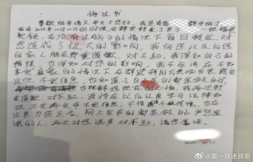 造谣者被依法处以行政拘留五日的处罚,并被迫写下了手写悔过书进行道歉,这起案件不仅关乎一位职业女性的名誉,更成为了我国法律对网络“黄谣”划出明确边界的一个重要注脚。