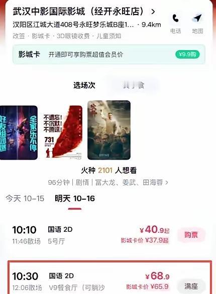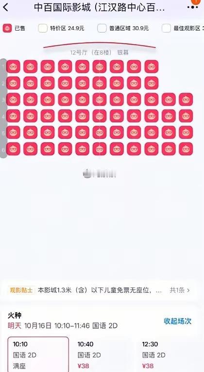 《火种》今天上映,有意思的是,有的影院VIP厅居然满座,票价还贵三十块。武汉排片最多,两家影院十点场都满了,但多数场次不是没人买就是满座,网友猜满座是影院硬凑的任务。其他场次购票都不到十人,这才正常。看来大家态度管用,电影八成要凉,富大龙这些好演员被拖累,真可惜。