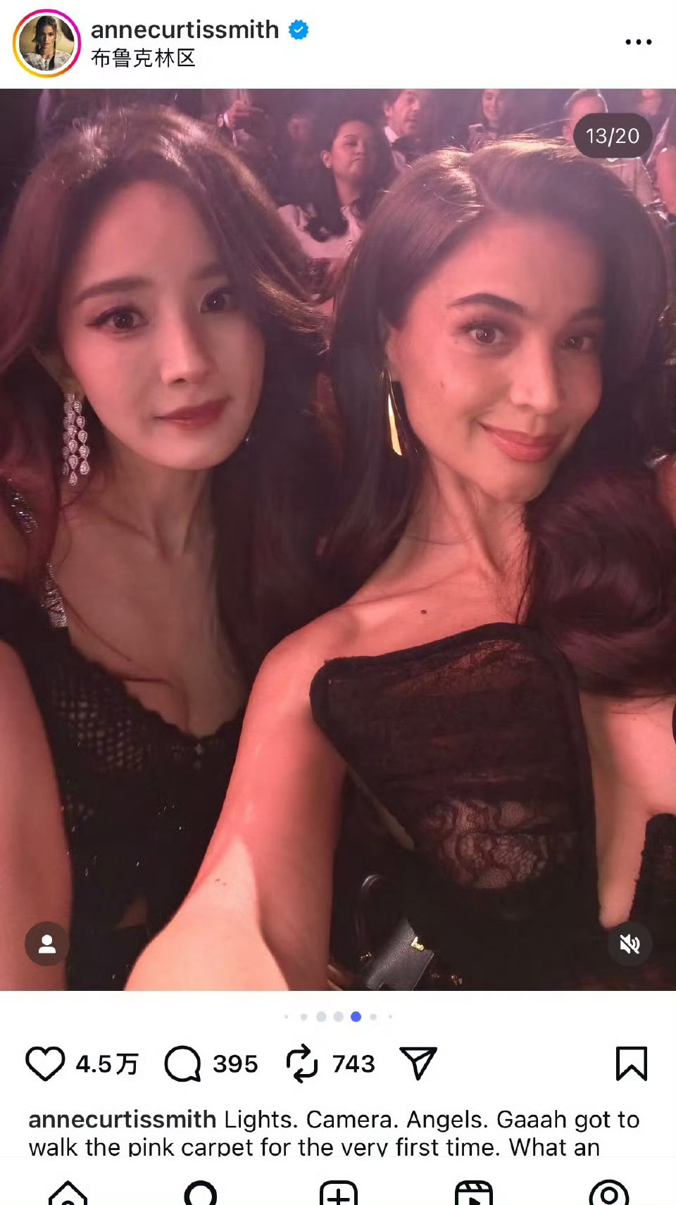 杨幂和安妮·柯蒂斯的秀场自拍,两张伟大的脸,两位大美女太赏心悦目了!!