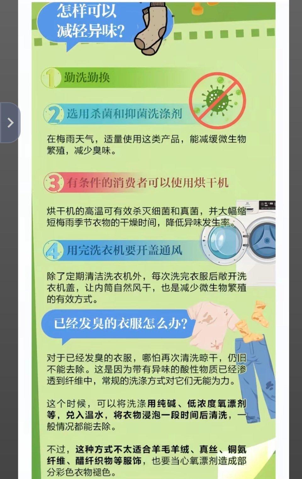 “阴干臭”终于破案!不是衣服没洗干净,也不是洗衣液假货,而是细菌在潮湿里开派对——它们啃掉汗水、皮脂,放出臭味分子,衣服就自带“馊味滤镜”。想赶走这股味儿,其实不难: 1. 先杀菌:洗衣机里加60℃以上热水,或者倒两瓶盖含“苯扎氯铵”的衣物消毒液,先泡10分钟再洗,细菌死一大片。 2. 再除味:洗完后别急着脱水,加一勺小苏打或半碗白醋,二次浸泡5分钟,中和臭味分子,连袜子都变清新。 3. 速烘干:只要条件允许,立刻烘干、阳光下暴晒;没阳台就用吹风机冷风对着腋下、领口猛吹,把残存细菌吹到脱水。 4. 日常预防:洗完衣服别在洗衣机里“焖”过夜,最好30分钟内拿出来抖平晾干;梅雨天备个除湿机或空调除湿,湿度降到50%以下,细菌就懒得繁殖。 一句话:细菌怕干、怕热、怕消毒液,把这三招刻进骨子里,阴干也能穿出“太阳味”。 (来源:新浪微博)