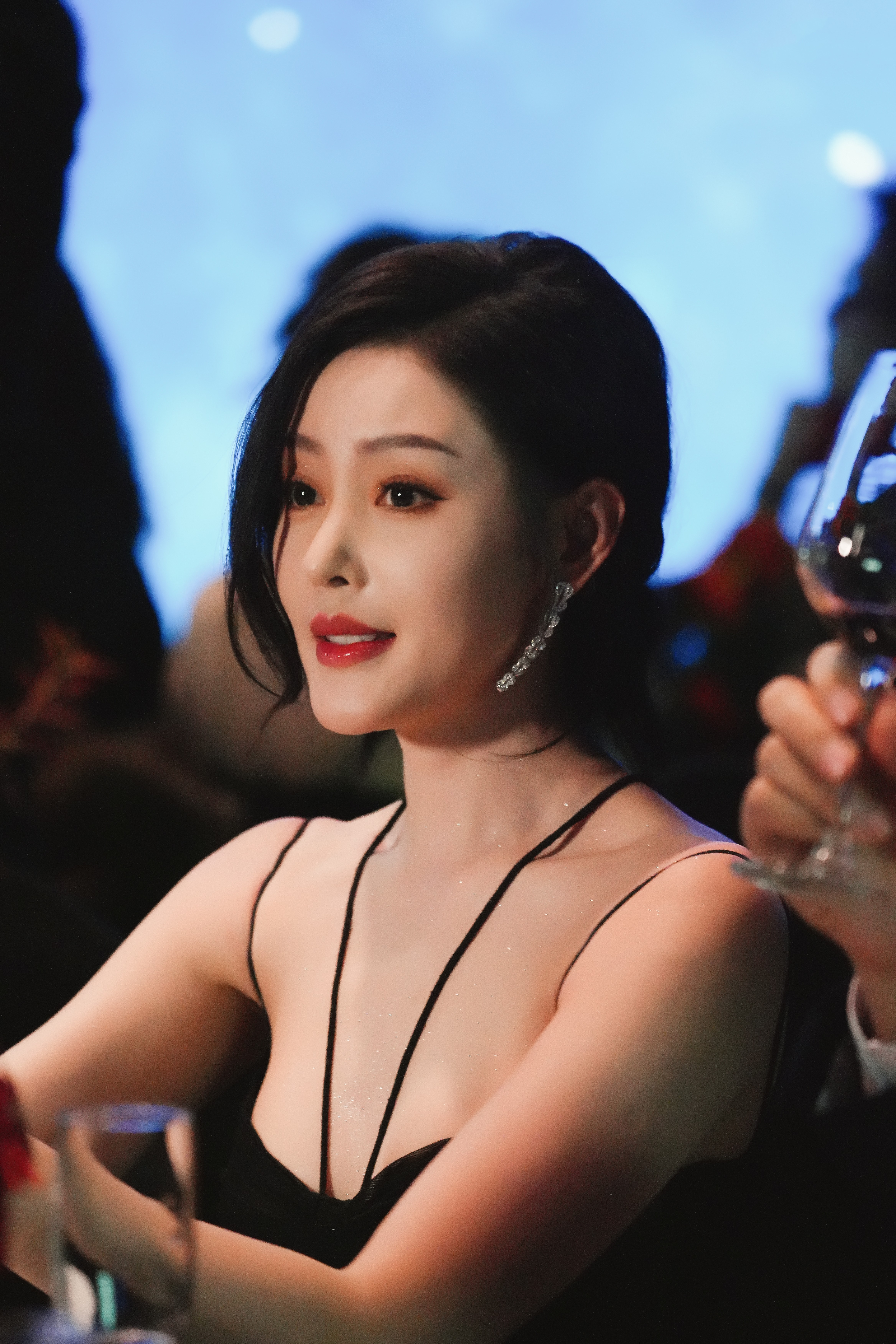 张天爱,穿黑色吊带裙,连生图都很美啊