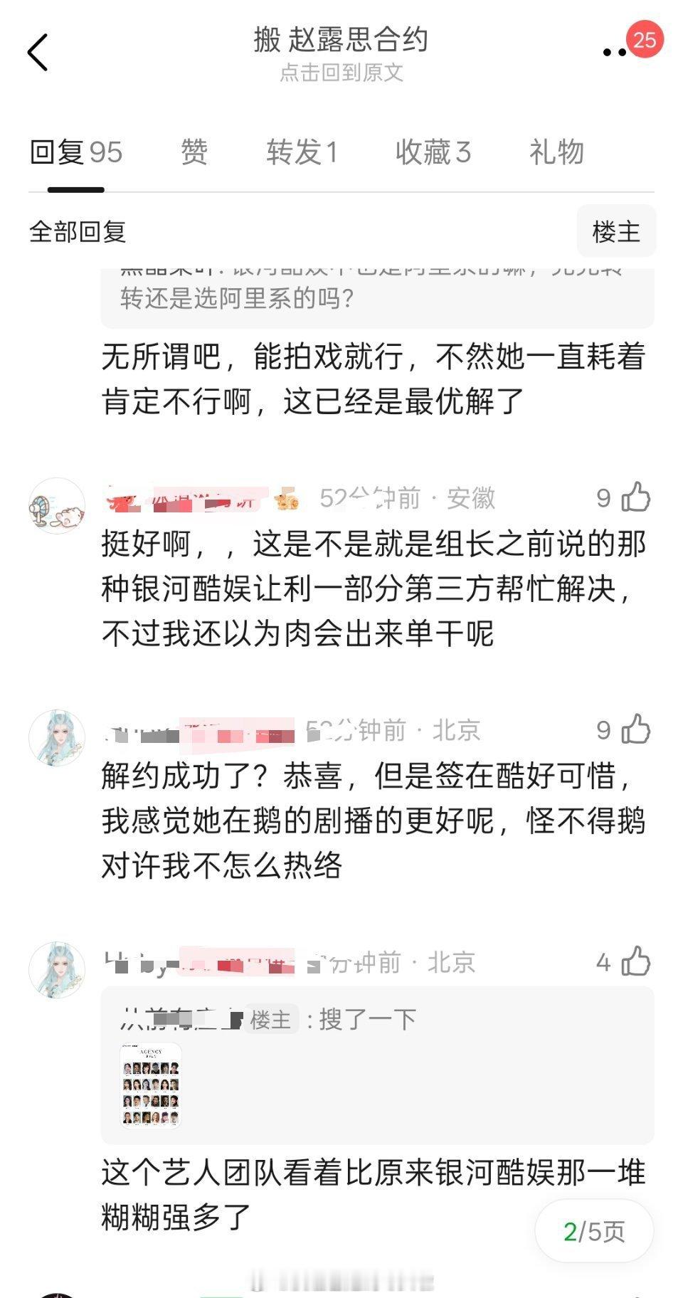 银河酷娱也是阿里系,所以是优酷出面调节了吗?估计优酷馋赵露思,怎么舍得让她一直休息不拍戏呢[哈哈]