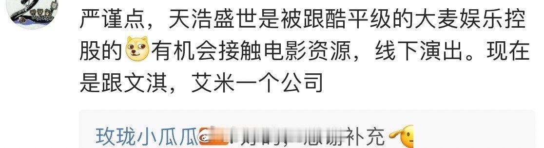 ps还有另一个版本说影视约签的阿里旗下的酷漾娱乐,经纪约签天浩盛世,还剩商务约不知道在哪里