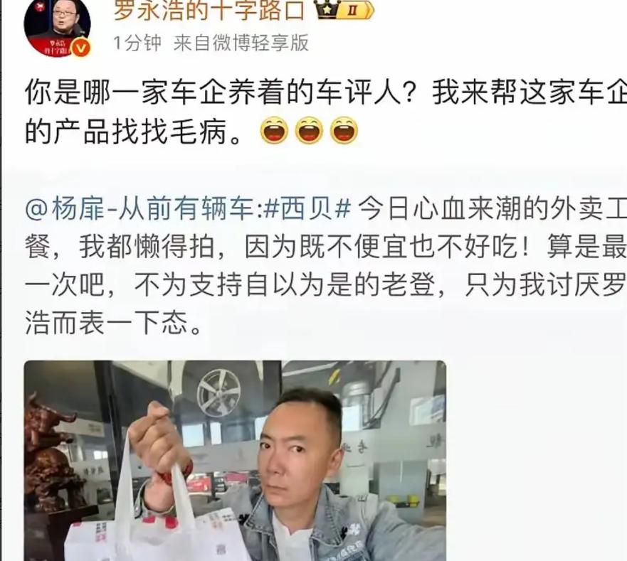 罗永浩的威慑力有多大? 一个车评人,因为发文买了西贝的外卖,就被罗永浩用一嘴“