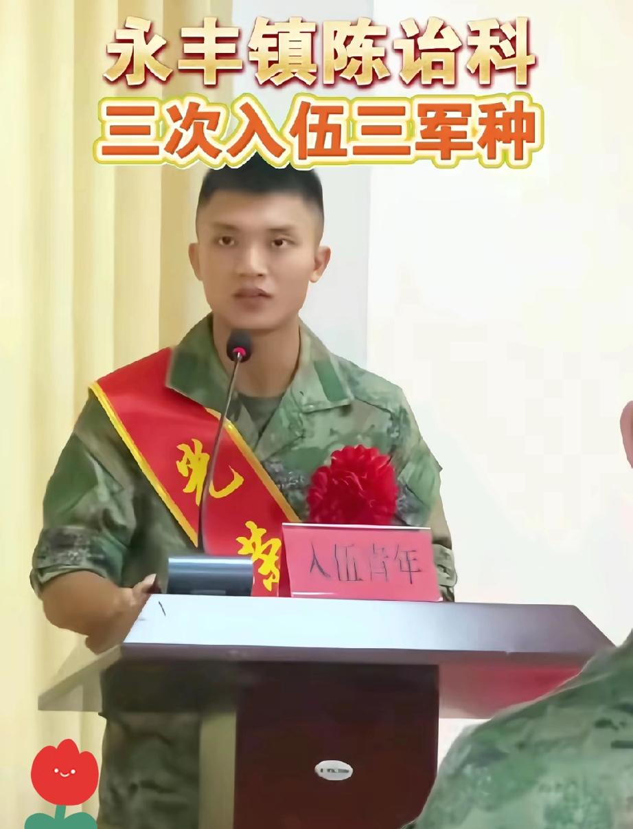 羡慕!佩服! 广东24岁的帅小伙第三次入伍, 经历三个兵种 穿过三种不同的军装。 而这次入伍, 距离上次退伍刚过去了半个月。 一人当兵,全家光荣! 他用实际行动表达了 保家卫国的决心。 此时此刻, 只想祝你前程似锦, 一生平安![赞] 入伍小伙 新兵经历 三次入伍