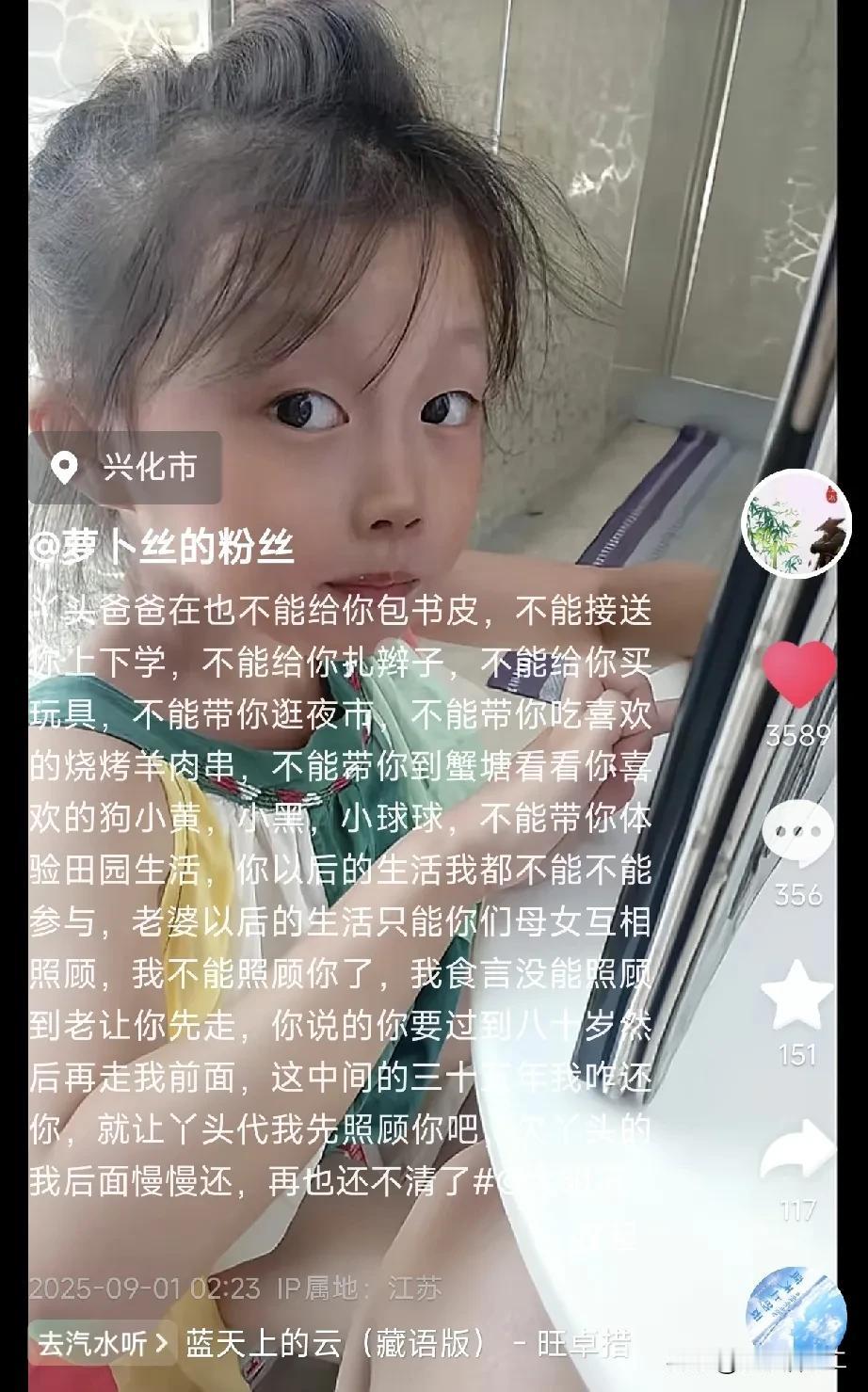 还记得在四川阿坝7人遇难事件吗?其中丧妻丧女的大明玉丈夫今天发文让人心碎。 今天是9月1号,基本是全国中小学生的开学日,小学生都要背上书包去上学了,家长们肯定要早早的起来,给他们准备好早餐,迎接新学期。 就在今天,学校也会发新书,而家长必备的一项工作那就是给孩子们包书皮。 大明玉的丈夫看着路上小学生们背着书包上学的身影有感而发,他在文中写道“再也不能给你包书皮,再也不能接你上下学,不能给你扎辫子,不能跟你逛夜市”。 文中最后他写道“我食言没能照顾你到老。中间的30年我咋还你,就让丫头带我先照顾你吧”。 最后还放出了一段在四川阿坝拍摄的视频。 阿坝的景色确实很美,四周全是高山环绕,中间还穿插着多条河流,所有的村落和建筑都建在最中间的平地上。 只是天空中布满了乌云,预示着是一个不好的结局。 很显然,这是大明玉在阿坝旅游时拍摄的,然后发给了丈夫,她还在视频中喊道太漂亮了。 有网友说,如果不去旅游就好了。 可是哪有那么多如果,谁又能预知未来呢? 直到现在小芯语和小云还没有找到,他们的家属心得多悲痛。 像网友说的那样,思念是把刀,刀刀锋利受伤的心血流不止,努力说服自己,把这段感情放心里,可反反复复无法忘记,那种痛令人窒息。