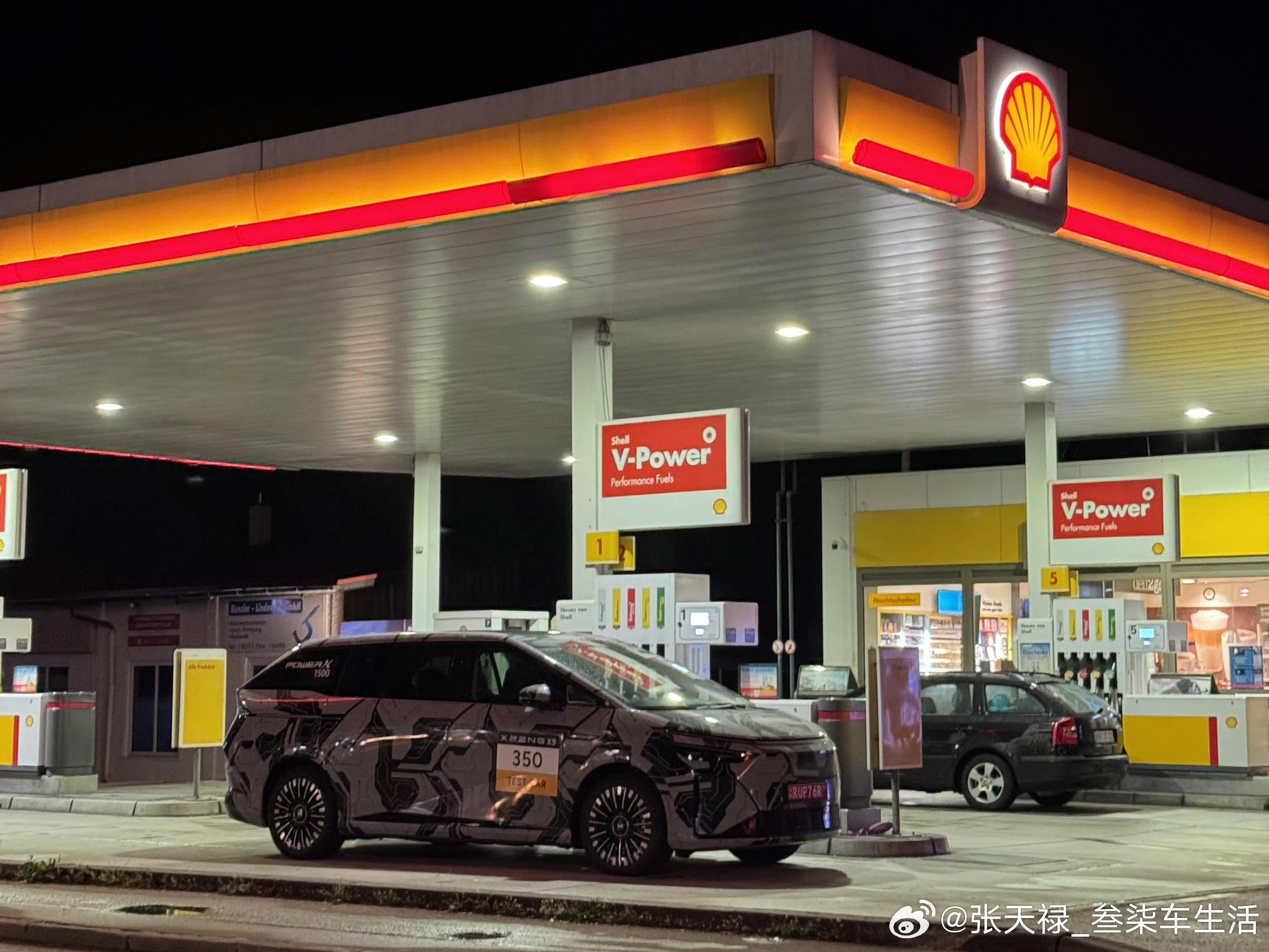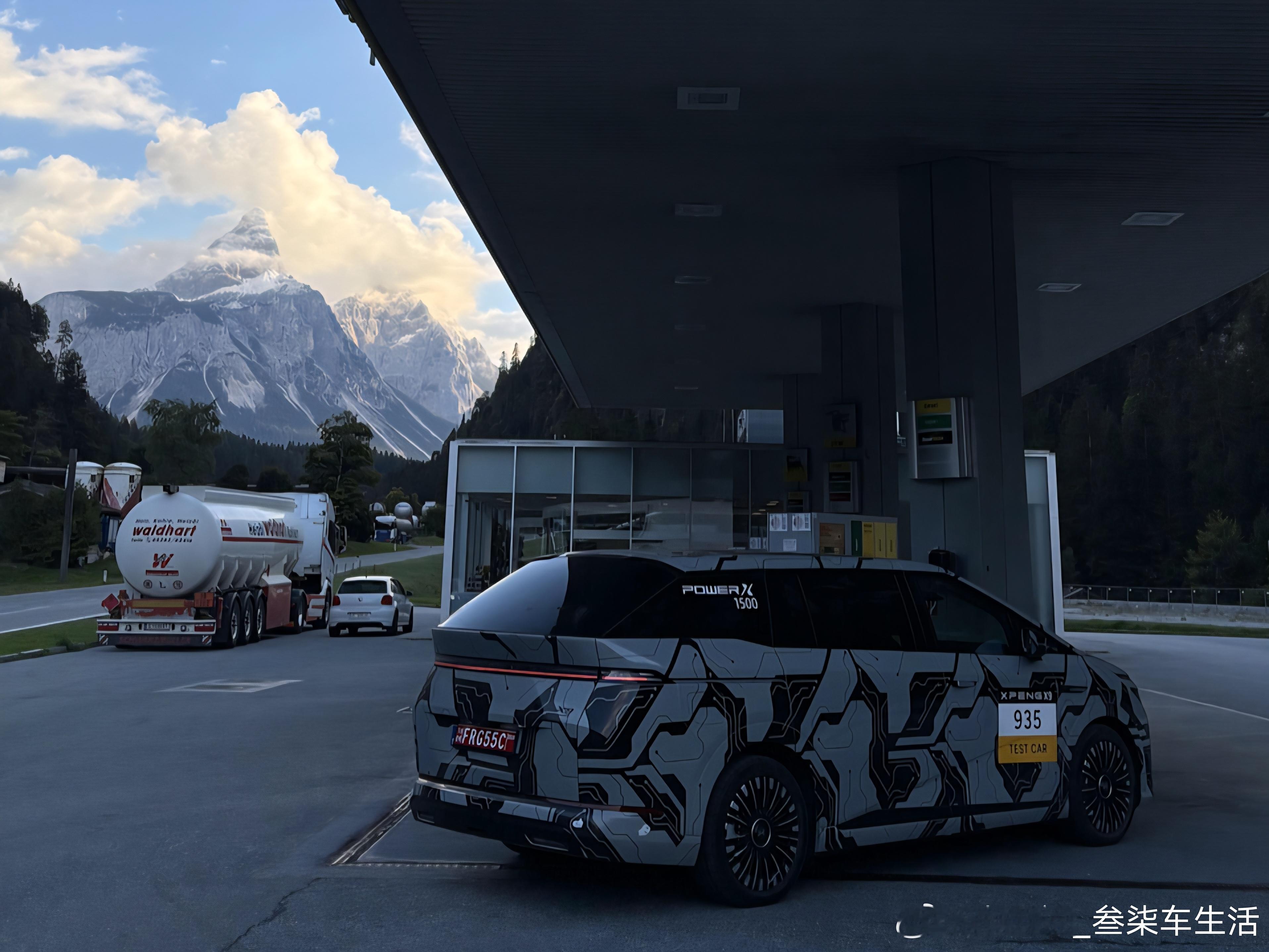 新款小鹏X9在德国加油站被拍增程版的小鹏X9就要来啦!