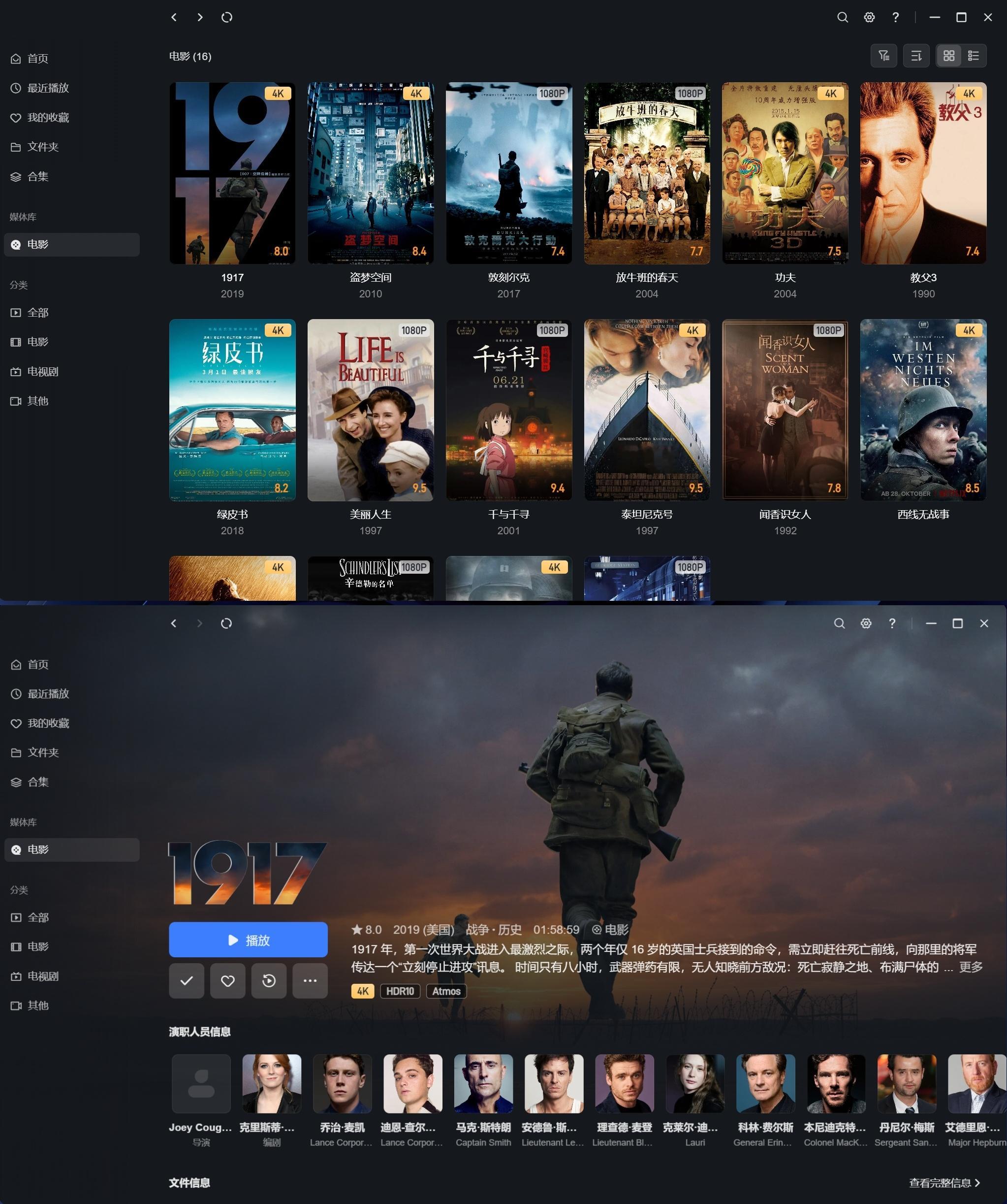 NAS都安排上了,休息时间不得整点片看看?绿联的影视中心同样非常人性化,把影片下载下来,会自动匹配电影封面、简介。有了NAS,打造个独享的影视库就很简单了!相比网络视频平台,自己存的4K蓝光资源画质更好,杜比视界、HDR也都支持,而且很多电影资源散落在不同的视频平台,想看的话要同时开好几个会员,现在喜欢的电影都存入了我自己的影视库,再也不用手忙脚乱到处找资源了,最近一直在收集我觉得很经典的影片,话说大伙有啥推荐的电影可以跟我说说~