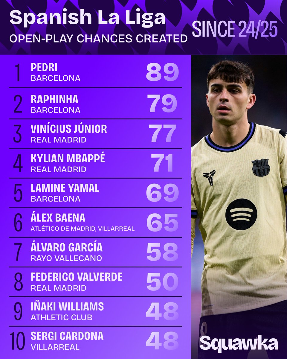 看了下英超的榜单,跟西甲一样前五的都是边锋/前腰,佩德里一个CM//DM怎么进来的,果然是不在前腰位干着前腰活嘛