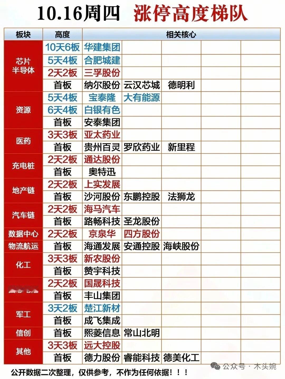 10月16日(周四)复盘整理出炉! (1):周四个股人气榜前三强:常山北明、山子高科、奥特讯。 (2)周四涨停高度梯榜,芯片半导体、资源、医药等板块各有表现,华建集团10天6板领涨,还有宝泰隆、亚太药业等多股展现强势。 (3)10月16日龙虎榜主要动向,欢乐海岸大手笔买入常山北明2.66亿,章盟主买入楚江新材8676万等; (4)国产芯片龙头代表,中芯国际、北方华创等23家企业,在芯片晶圆代工、半导体高端设备、CIS芯片等不同领域担当龙头,展现国产半导体的强劲实力,是行业发展的重要力量~ 理财有风险入市需谨慎!
