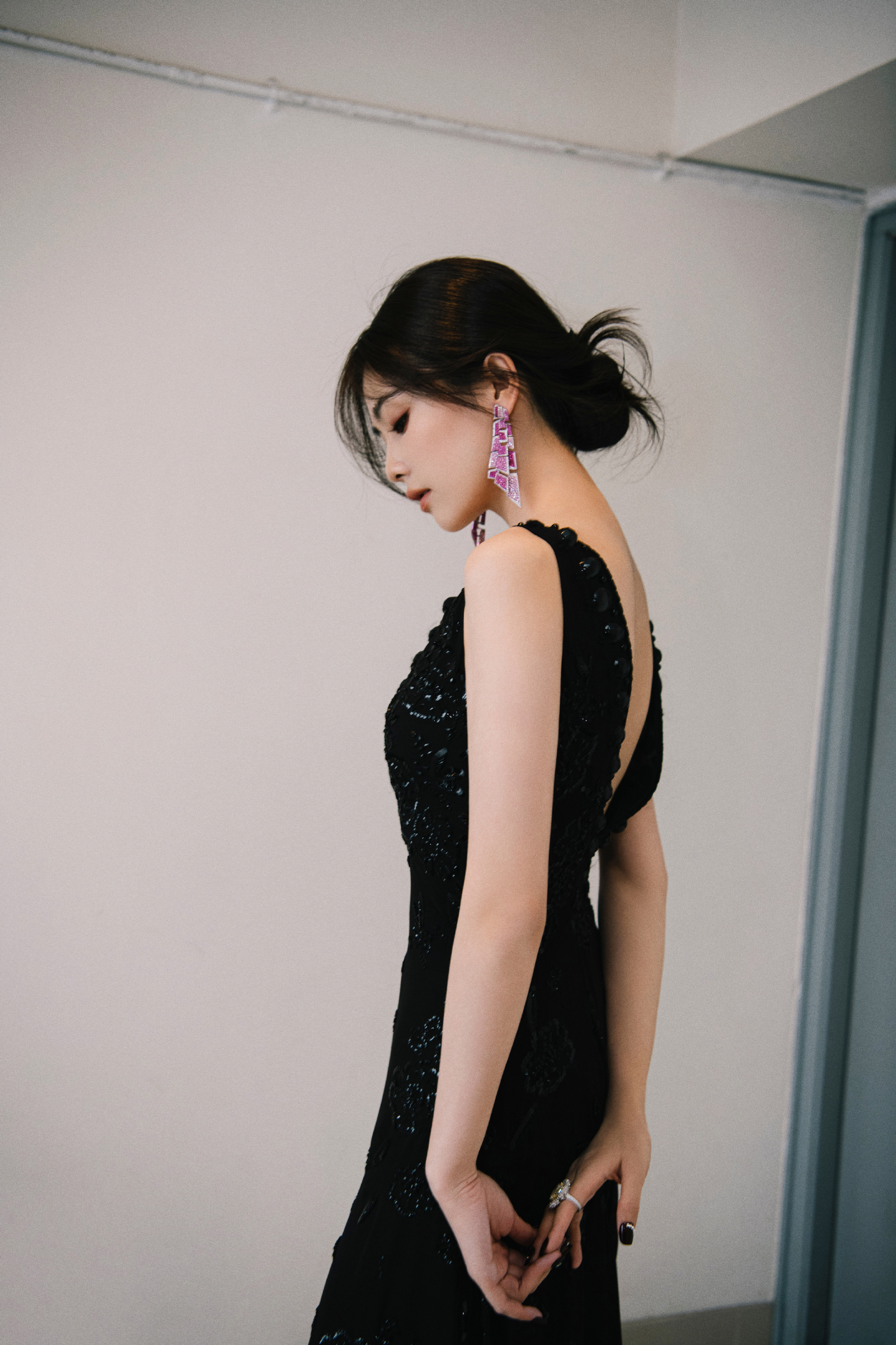 白鹿:黑色露背长裙,浪漫复古,妩媚动人