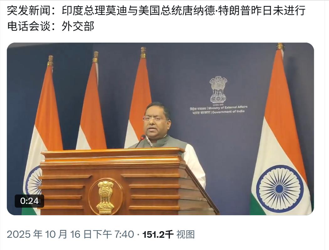 到底谁在说谎?今天的美国和印度各执一词: - 特朗普在镜头前称莫迪在电话上向自己保证好了:【印度会停止购买俄罗斯原油】——而他认为这是通向终结乌克兰战争的一大步。 - 很快听到新闻的印度方面否认并抗议:【莫迪并没有和特朗普总统进行过通话。印度做任何能源上的决定,均是基于消费者利益进行考量。】 特朗普还是莫迪,此时必有一方在说谎。你觉得会是谁?