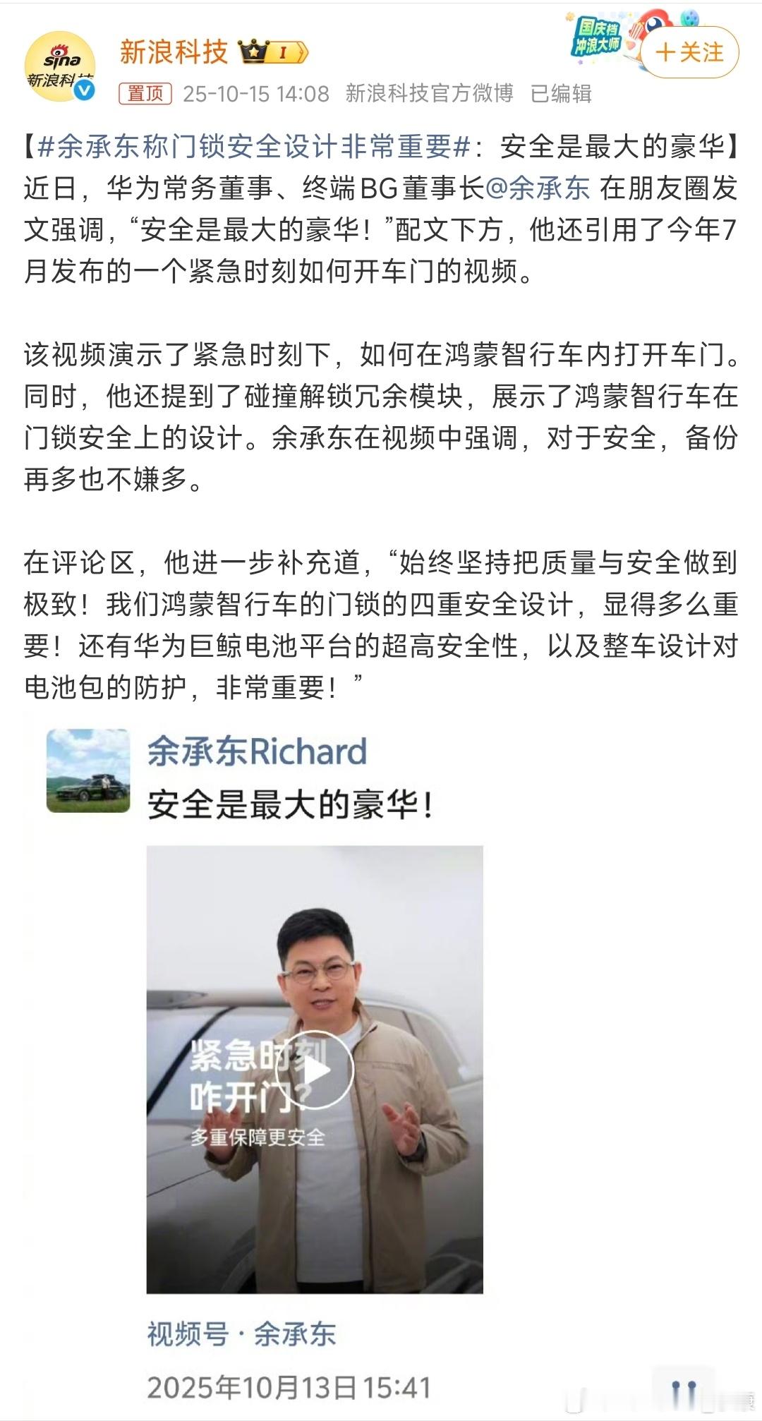 在这个时间节点,发“汽车门锁设计”的视频,非常耐人寻味。