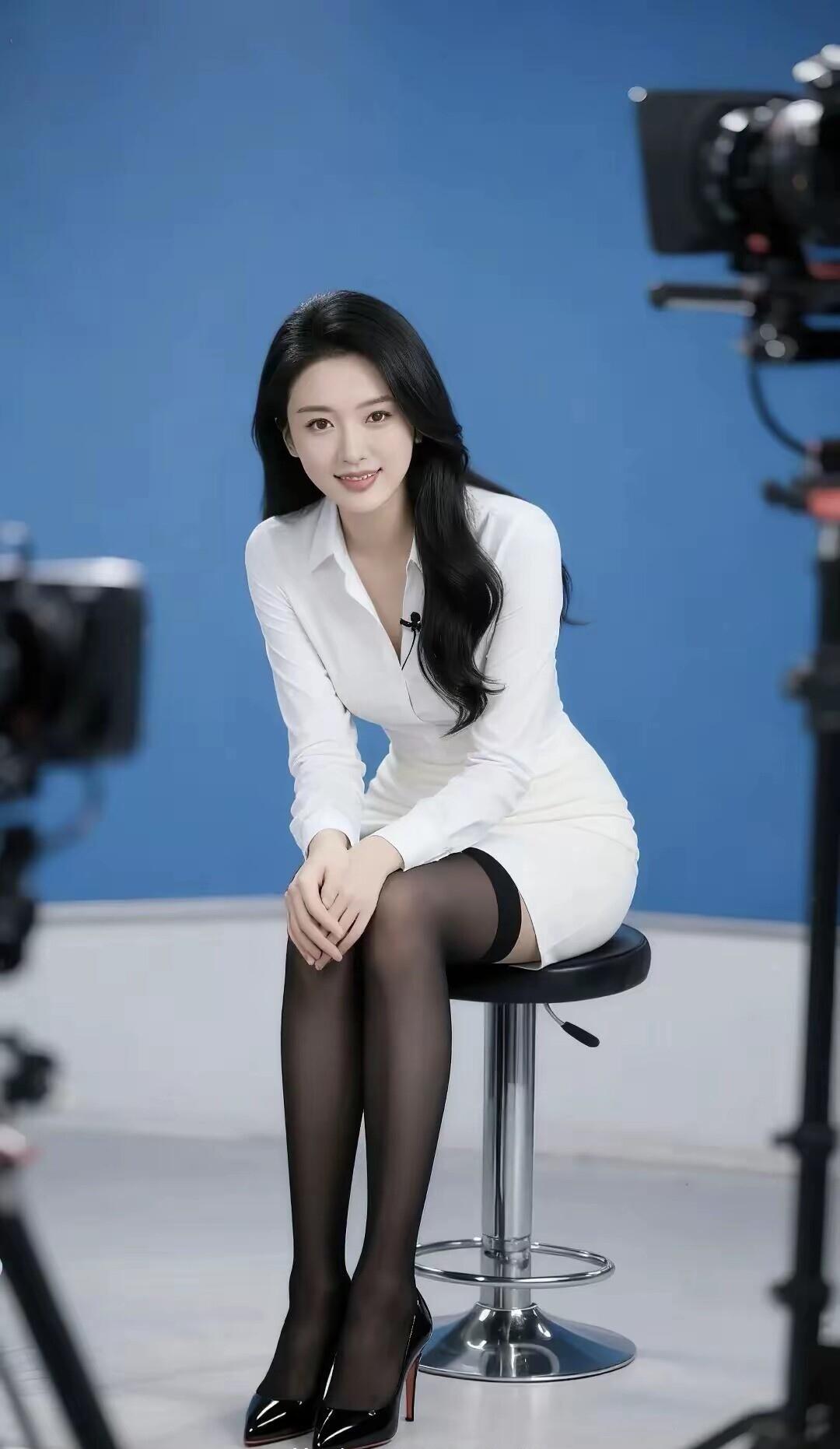 优雅白裙,自信坐台前,镜头下的迷人风采