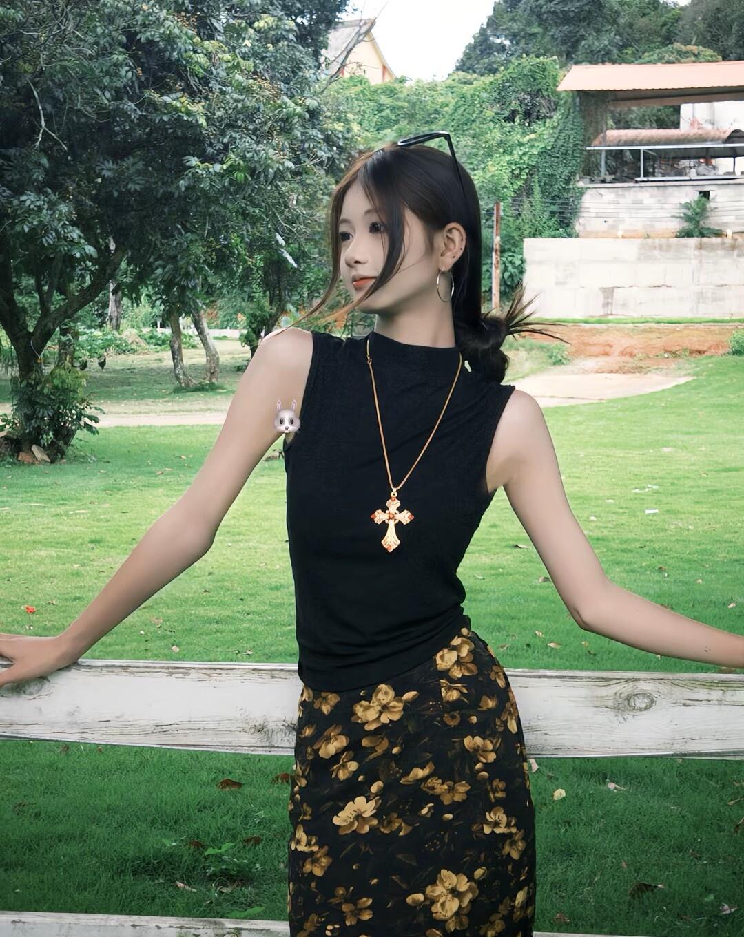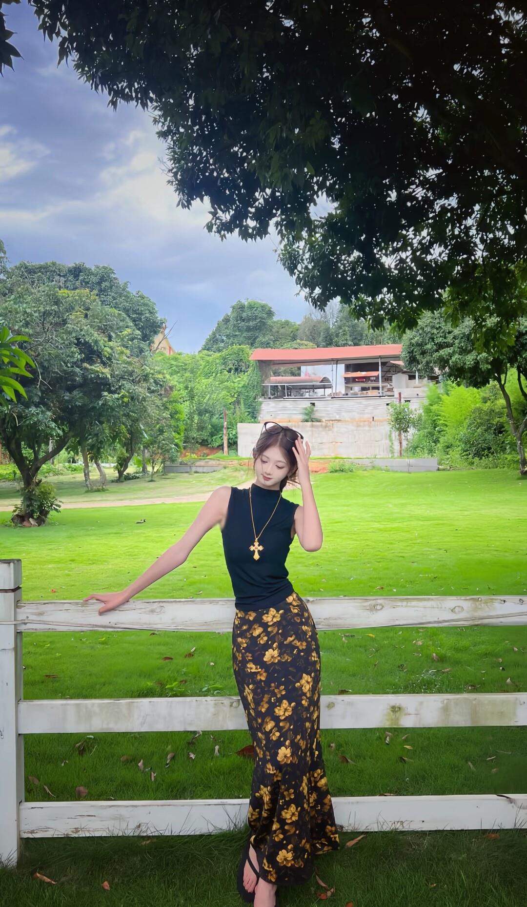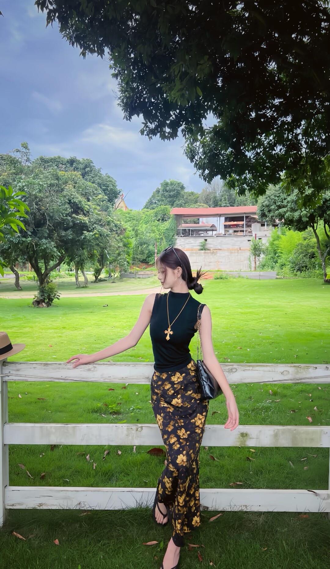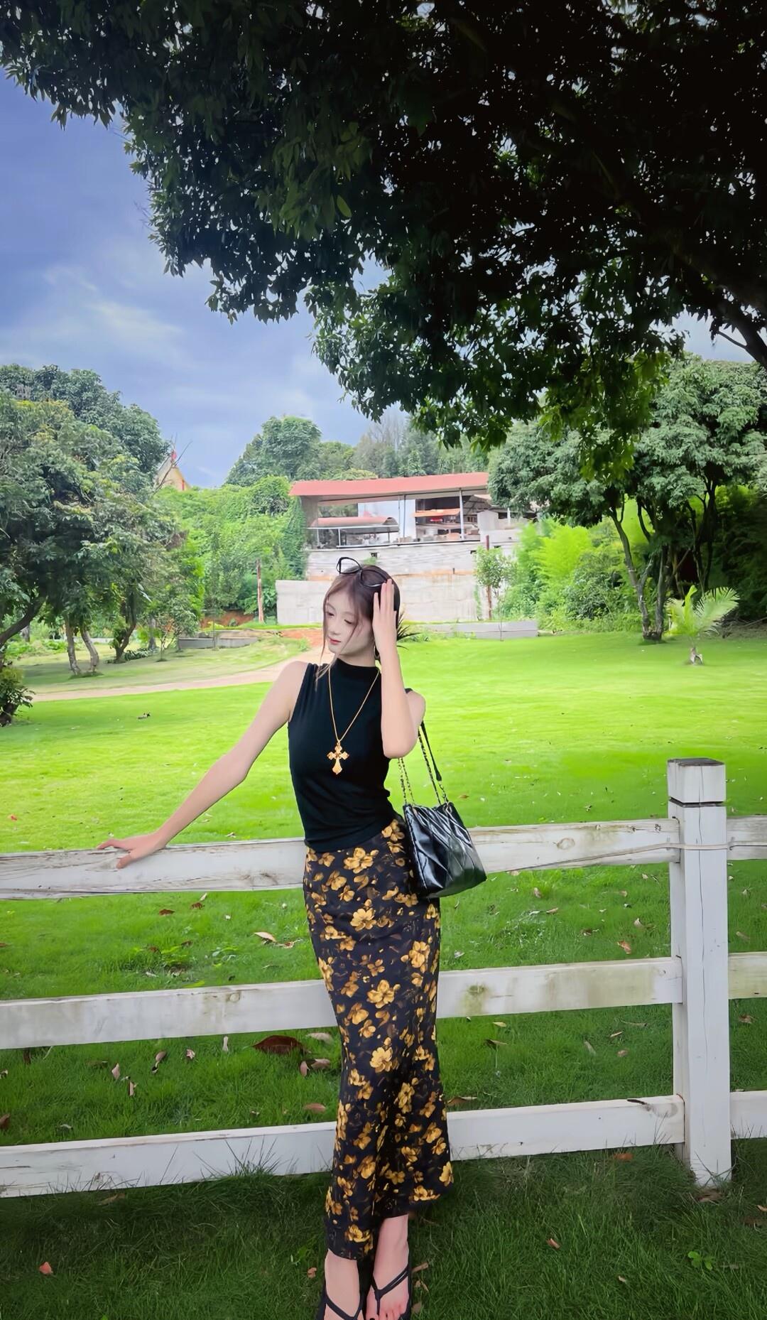 夏日穿搭指南:黑色上衣+印花长裤,轻松自在享受美好时光🌞💃🏻