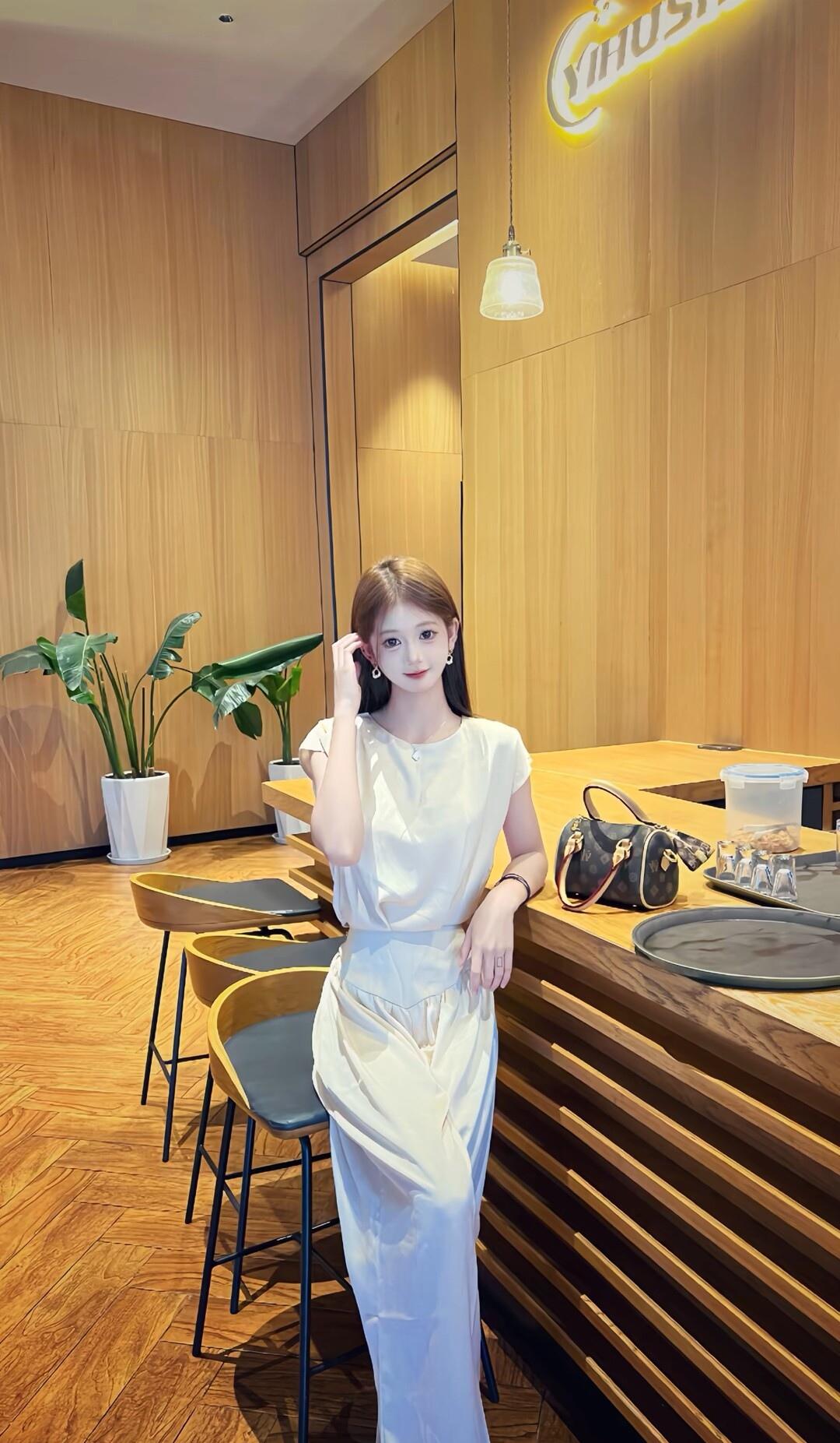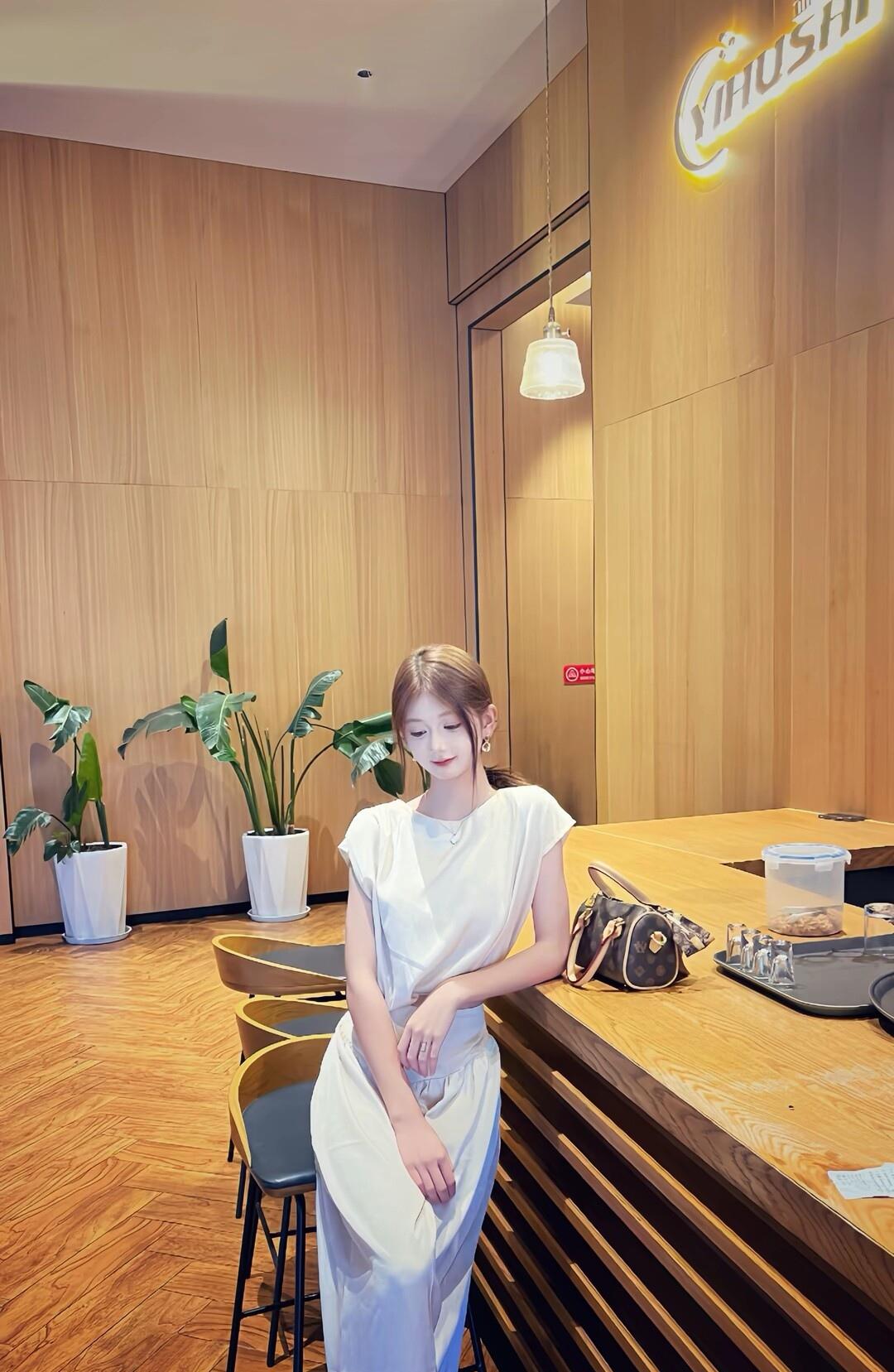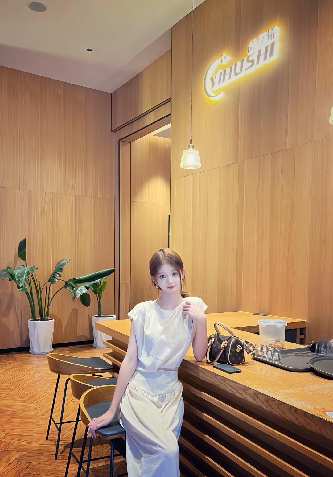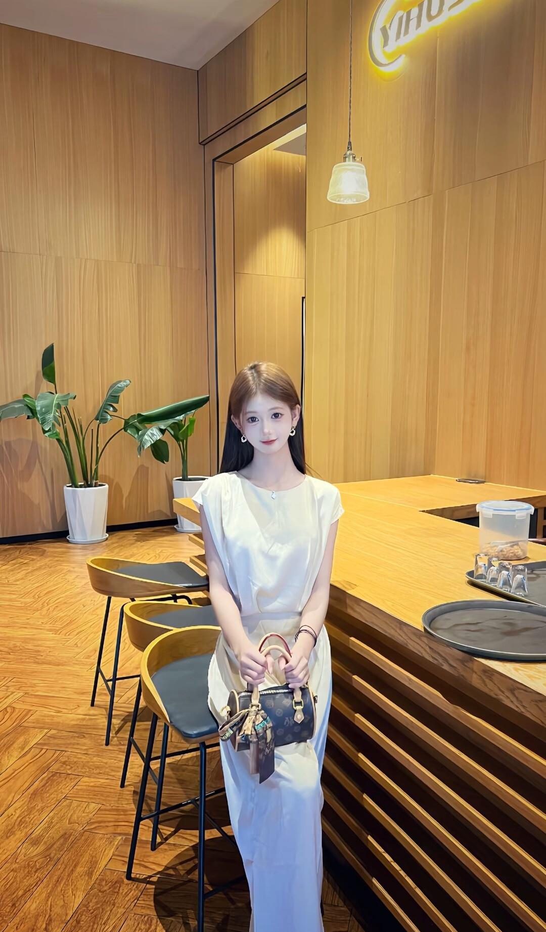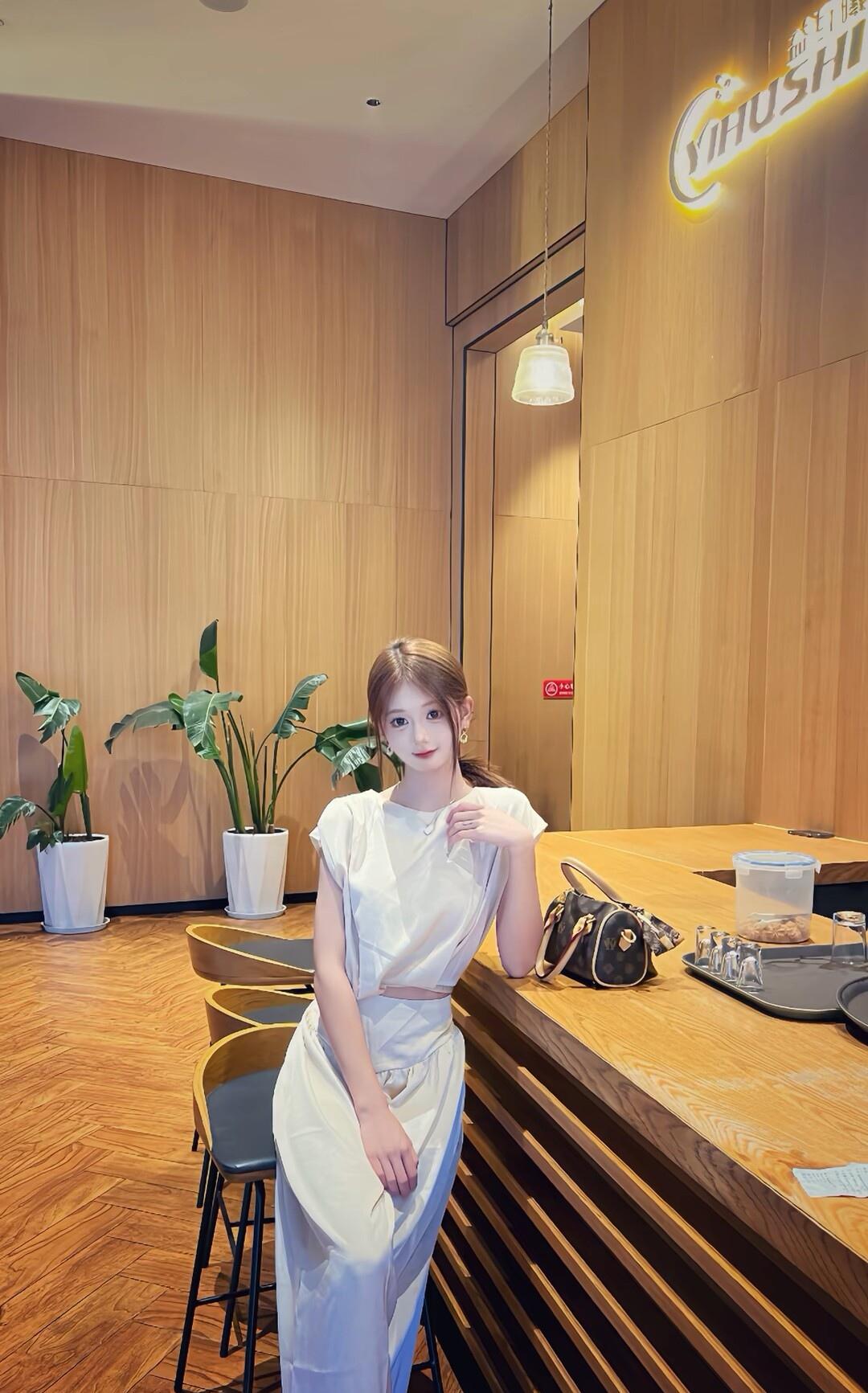 优雅白裙,自信坐台前,镜头下的迷人风采