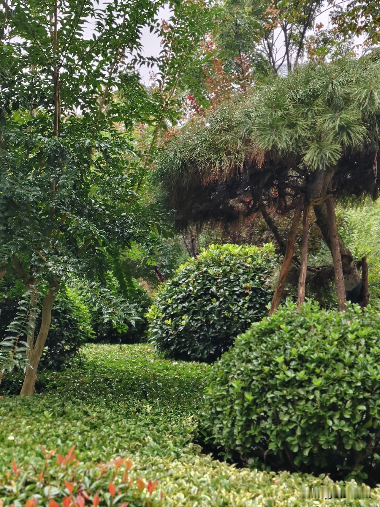 雨中园景 细雨如丝,悄然浸润了这座园林。踏入其中,满目皆是被雨雾晕染的绿意,浓淡相宜,似一幅晕开的水墨长卷。 左侧的乔木舒展着油亮的叶片,雨珠在叶尖凝成剔透的玉坠,微风掠过,便簌簌坠落,惊起草间几点碎响。不远处,几株造型松如苍劲的墨笔勾勒,松针间积着薄薄的水色,深褐的枝干虬曲伸展,似在雨中诉说岁月的沧桑。 路畔的冬青球圆润如翠玉雕琢,每片叶都吸饱了水汽,将绿意涨得满满当当。脚下的地被植物连成一片绒毯,雨丝织就的光泽在叶面上流转,偶尔点缀的嫩红新叶,如绣针挑出的花饰,为这深绿的底色添了几分活泼。 雨雾朦胧了远处的树影,让整个园子浸在一片清润的气息里。湿润的空气裹挟着草木的芬芳,涌入鼻腔的刹那,尘世的喧嚣便被隔绝在外。此刻的园林,没有游人的喧闹,只有雨与叶的私语,每一寸景致都在雨中沉淀出静谧的诗意,叫人忍不住放缓脚步,生怕惊扰了这雨里独有的清宁。