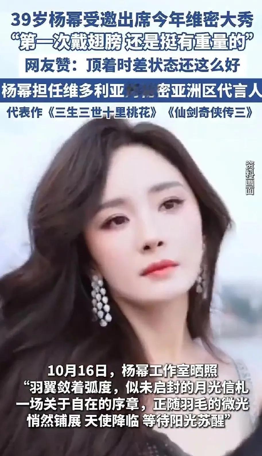 39岁的杨幂以维密亚洲区代言人身份惊艳亮相2025大秀,首度背起维密经典翅膀的她笑称“第一次戴翅膀,还是挺有重量的”。 香槟金主调的翅膀缀满水钻,内侧若隐若现的中式缠枝莲纹样,在她挺拔的身姿下流转出东方美学与西方奢华的交融之美。 生图直出的她皮肤透亮,黑色镂空露肩裙搭配细跟高筒靴,冷白皮与收腰设计勾勒出曼妙曲线。 从《仙剑三》神女夕瑶到国际T台,她用15年沉淀诠释了“性感是坚持自我的态度”,这场双赢合作,让世界看见东方美学的璀璨新生。 杨幂 杨幂明星照