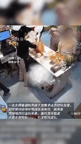 这下火了!湖南长沙,女子在水果店买完橙子后要求店员把水果切块,在等待的过程中,女