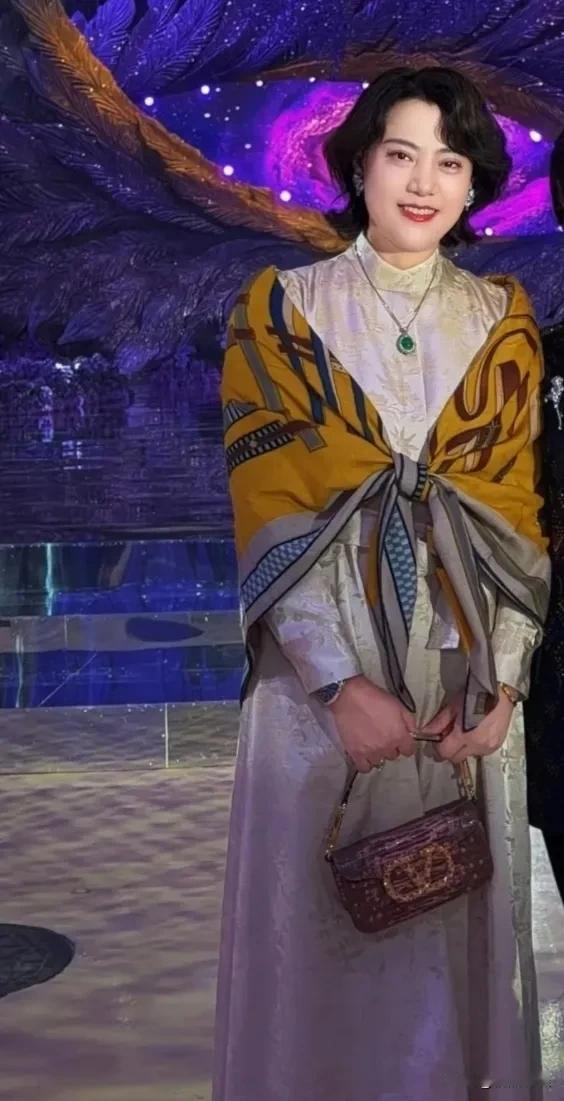 原来黄子韬的妈妈颜值气质不输大明星啊! 作为主家妈妈,她打扮精致出现在儿子的婚宴上,穿着一身粉紫色中式长裙,还围着一个褐色披巾,个子高挑,身材丰腴,五官大气,穿搭时尚,明艳大方,周身的富贵相。 其实仔细看面容,你就会发现她和儿媳徐艺洋还挺像的,都是那种明艳耐看型,果然不是一家人不进一个门。 会不会当初黄子韬是看到了徐艺洋那熟悉的长相,才狂追的啊?[捂脸]。 现在我有直觉,黄子韬和徐艺洋生的孩子一定会很好看,毕竟基因在那啊,几代人都是高颜值!