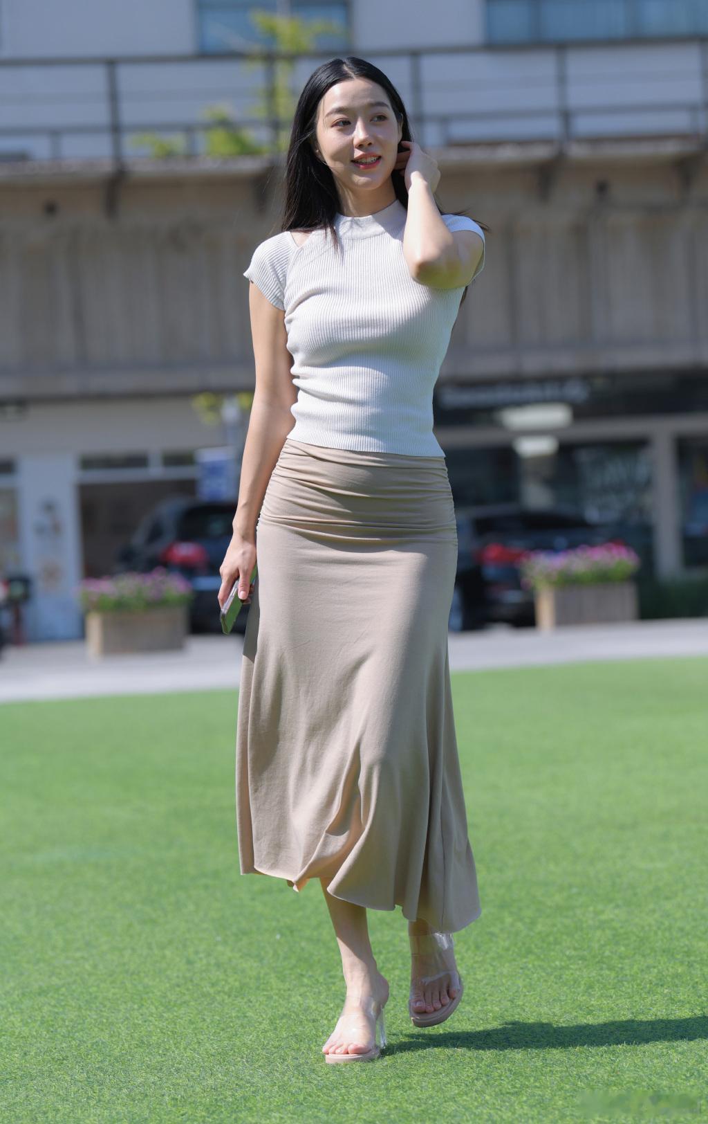 都市街拍,时尚少女,微笑动人,高跟鞋,完美穿搭街拍美女