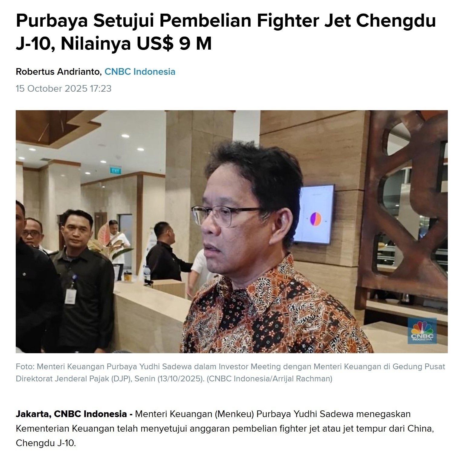 印尼购买歼-10战机的情况基本属实,但仍有几个疑点!近几日,印尼国防部长、财政部