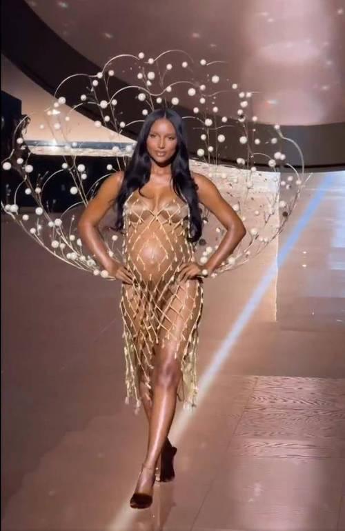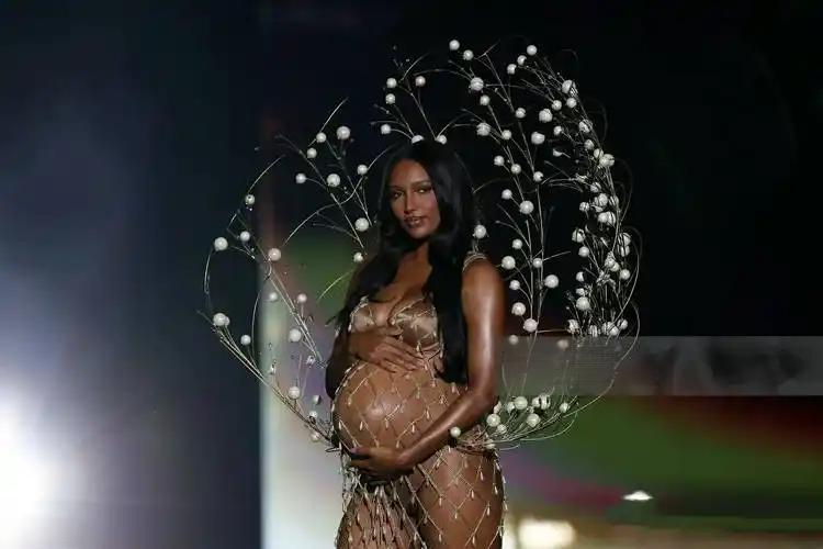 2025年维密大秀上,35岁超模JasmineTookes以怀孕9个月的孕晚期