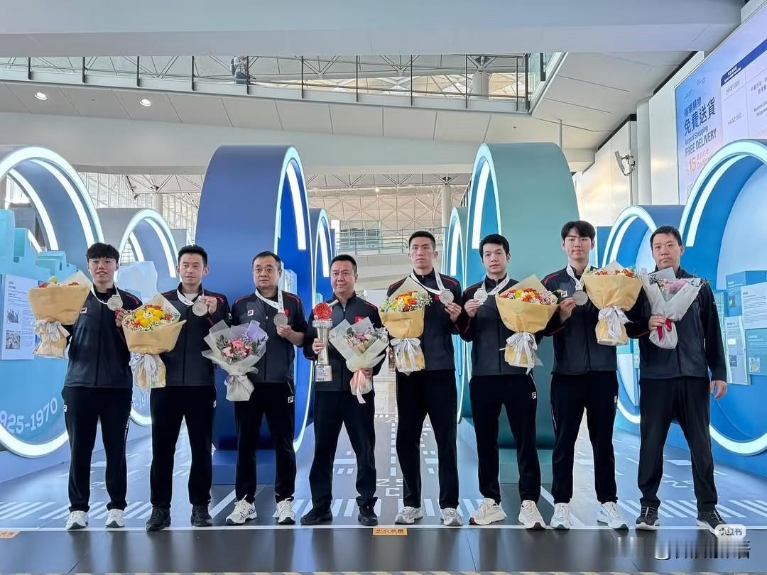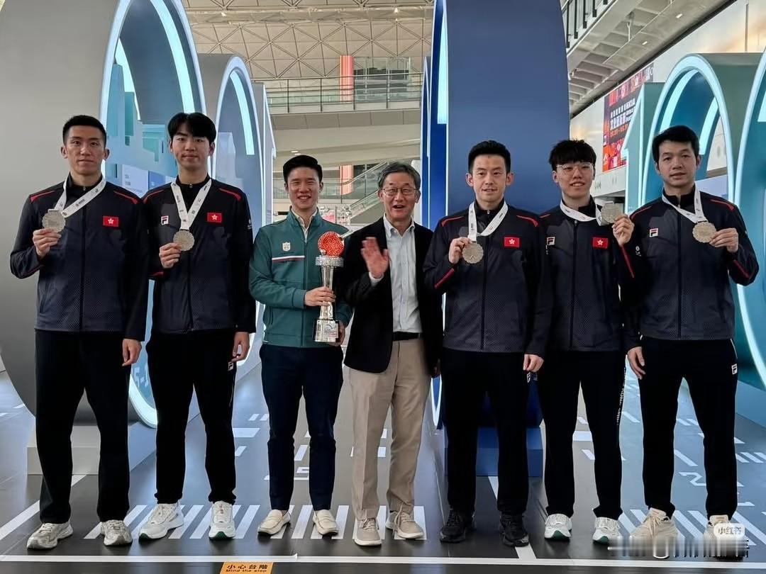 港队已经回到香港了,在机场时满满的仪式感。 今年的亚锦赛中国香港队是拿到了男团亚