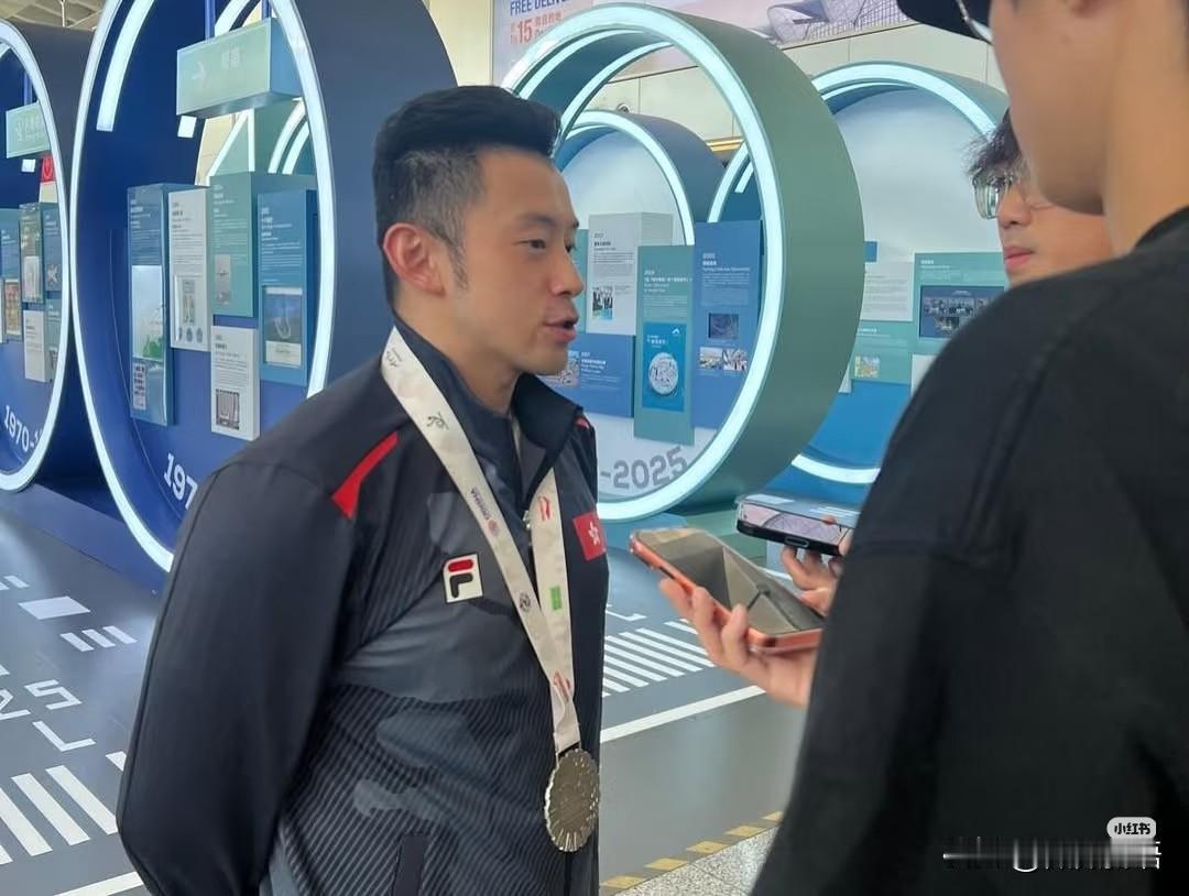 港队已经回到香港了,在机场时满满的仪式感。 今年的亚锦赛中国香港队是拿到了男团亚军,也是满载而归。他们抵达香港后,中国香港乒协主席等到机场接机,为每一位运动员和教练、后勤工作人员都准备了鲜花,仪式感满满,看到港队男团还戴上银牌后站在那里拍照了,黄镇廷也接受了记者的采访。看到一个细节,就是该男团运动员包的花束颜色跟其他人的不一样,这也是肯定了他们的付出,时隔16年港队男团再次拿到奖牌,他们是真的很开心。 亚锦赛男团决赛中国队是3-0港队,一个冠军一个亚军,当升国旗唱国歌时,看到港队的运动员和教练也是第一时间把手里的花和吉祥物放下,一起行注目礼,一起唱国歌。颁奖仪式结束后,中国队和中国香港队还一起拍了大合影,看到小陈弟弟还和莎莎姐姐挨着站了,这孩子回去肯定很开心吧。 这次比赛,中国香港男团真的打的很好,小陈弟弟关键时刻也能给团队凑一分。在瑞典大满贯的时候大圣和小陈还一起拿了男双的冠军,小陈和杜凯琹长得有点像,大家说大圣的两个搭档像姐弟一样,可能这就是缘分吧。再次恭喜港队拿到亚锦赛银牌,未来继续加油!