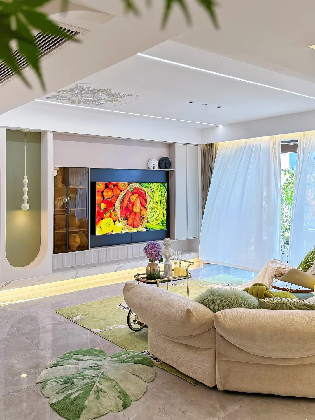 和老公一起攒钱装完第一套房,想分享却被劝别发朋友圈 老公说“除了爸妈,没人真盼你过得好” 没忍住试了一次:同事暗戳戳说炫富,领导让我别太高调,亲戚嫌风格怪还追问没留客房… 既然朋友圈装不下我的小家,索性来分享,全是自己踩坑总结的装修干货✨ ✅别盲目开工! 先定风格,我家选的现代轻法式,住到现在都觉得高级 ✅预算卡紧! 只留 10% 浮动空间,装修就是无底洞,划好底线才不慌 ✅硬装软装抓重点! 轻硬装但水电这些隐蔽工程别含糊,软装统一色系🍃 ✅显大又温馨小技巧! 地砖通铺显宽敞,我家无主灯 + 3000k 色温特舒服 ✅电视墙是客厅灵魂! 我家电视墙颜值出圈,搭配上高颜值电视是视觉亮点 选电视不仅颜值要好看,还要画质惊艳!高端机同款的TCL华星蝶翼星曜屏很戳我 !机身薄到贴墙,摆在客厅里就像精致挂画~ 以前白天阳光照进来,老电视泛白反光根本没法看,得亏T7L Ultra配备了0.5%LR低反膜加上89°液晶内低反设计,让整机反射率低至1.8%,强光下不用拉窗帘,画面照样通透,原生对比度高达7000:1,画面立体感在线,看大片时直接沉浸✌️ 画质细节也很到位,采用了万象分区控光技术,这是从发光芯片到屏幕全链路7大环节实现技术突破的一整套系统级Mini LED控光方案;像我买的这款75寸T7L Ultra拥有1248个万象分区,远超2500级普通分区控光效果,画质细腻到把世界名画投上去当壁纸,秒变 “会动的艺术品”;还有 绚彩XDR 3000nits + 量子点 Pro技术的加持下,电影里的风景亮而不褪色,色彩特别真实,关键还没屏闪,崽崽看动画片也放心~ 音响是安桥 2.1.2 Hi-Fi 的,看剧时人物对话特清晰,就算音量不大也能听清 最戳懒人的是灵控系统 3.0!没有开机广告,老人小孩都会用~周末窝沙发看 4K 绿植纪录片,墙面绿意和屏幕里的光影融在一起,连空气都变清新了! 真心建议轻法式装修的宝子们,像 TCL T7L Ultra既有 “融入家居” 的美学,又有专业级画质的硬实力,才是提升家居格调的关键~