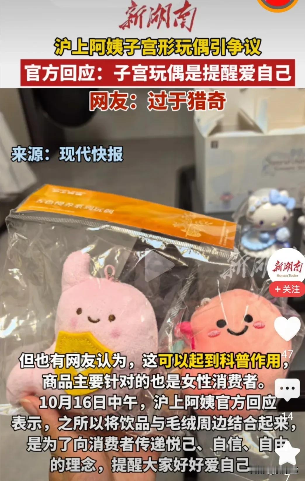 炸锅了!喝杯奶茶送个“子宫玩偶”?沪上阿姨这次玩大了!新品“小宫举”毛绒玩偶刚上架,社交平台直接吵翻天!网友怒怼:喝奶茶时看着“输卵管”“卵巢”,胃口全无! 这款玩偶造型直白,倒梨形配粉红双色,页面明示对应女性生理周期。品牌方称是为“传递悦己理念,提醒女性关爱自己”。支持者力挺:打破身体羞耻,科普从娃娃抓起!“子宫有什么好避讳的?” 但反对声更猛烈:“猎奇营销没下限!”“孩子问这是啥,我怎么解释?”大量消费者表示“生理不适”,质疑品牌拿女性器官当流量密码。 更尴尬的是,事件发酵仅12小时,沪上阿姨紧急下架,承认“创意与接受度失衡”。此前“开衩旗袍杯”“马桶搋子周边”已争议不断,这次“子宫玩偶”再掀风波,被讽“总在擦边边缘试探”。 是突破禁忌的勇敢,还是博眼球的失败营销?当关爱变成争议,品牌的社会责任边界在哪?你怎么看?