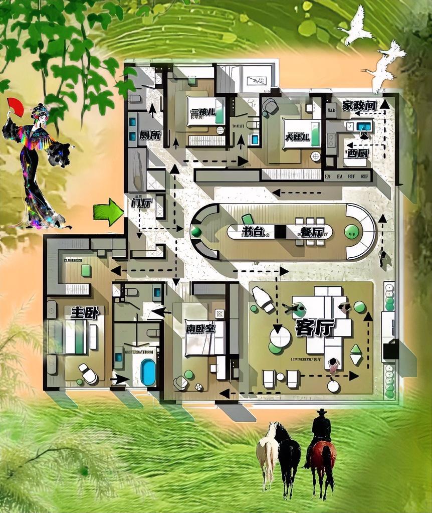 我喜欢这样的户型,小玄关,大洄游,正客厅,186㎡开悟了,通透,知性有书香气,三