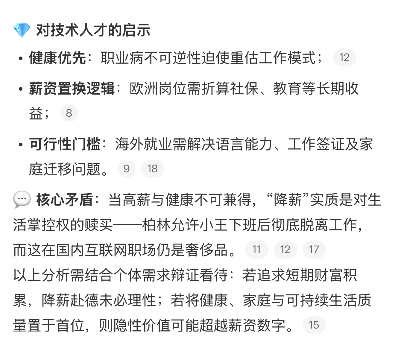 这就是选择,有人愿意用青春换高薪和成长,有人更想要属于自己的时间和体验。没有标准答案,只看你更在意什么。